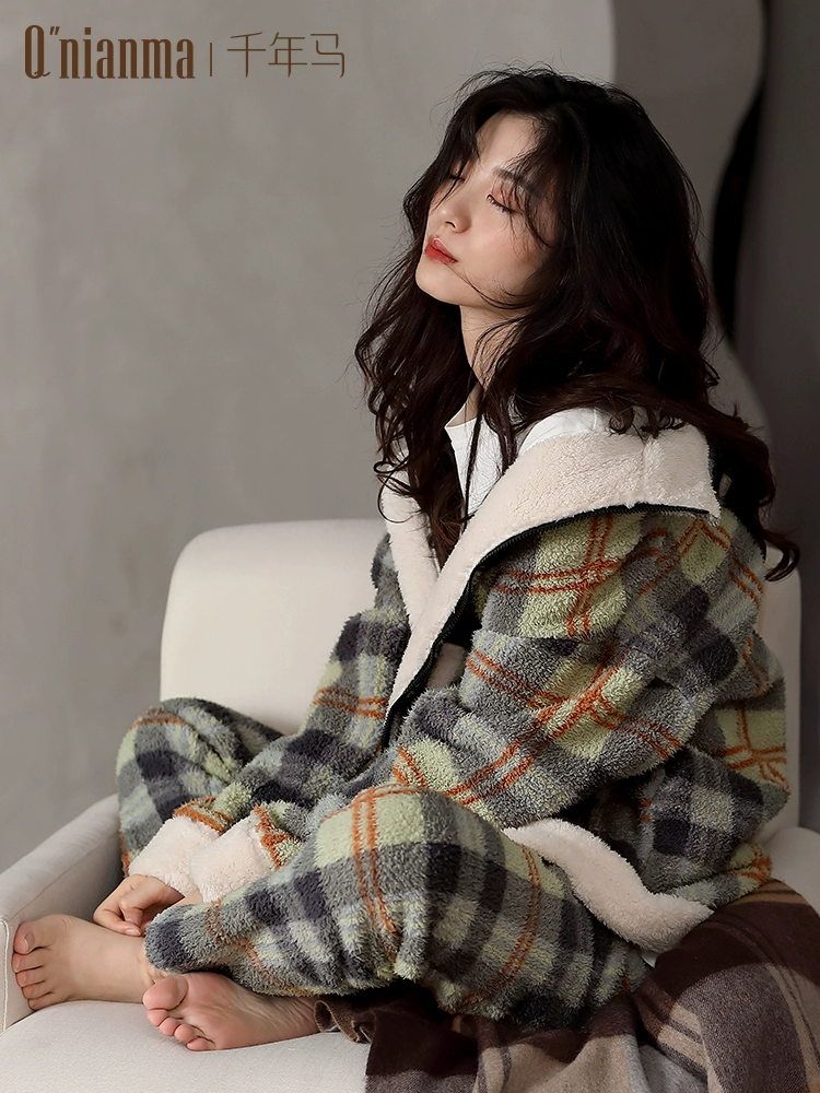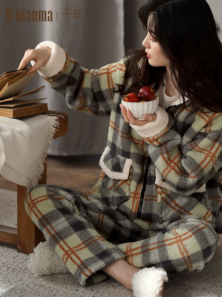 | nameOriginal | Thousand-year-old horse coral velvet pajamas for women winter plus velvet thickened warm plaid can be worn outside home clothes flannel suit |