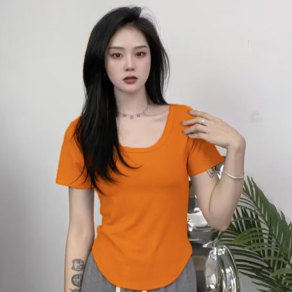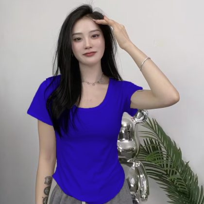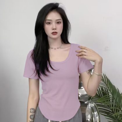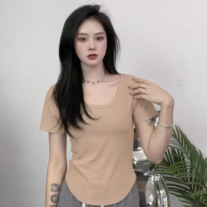 | nameOriginal | Thread Cotton Spice Girls Pure Desire Short-sleeved T-shirt Women's Summer U-collar Korean-style All-match Top Women's Slim-fit Slimming Base Shirt |