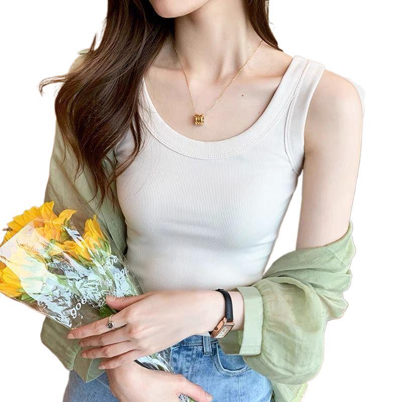 Threaded Anti-running Sleeveless Thin All-match Base Camisole Vest Women's Spring and Summer Elastic Outer Wear Inner Top Women's