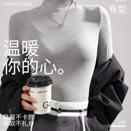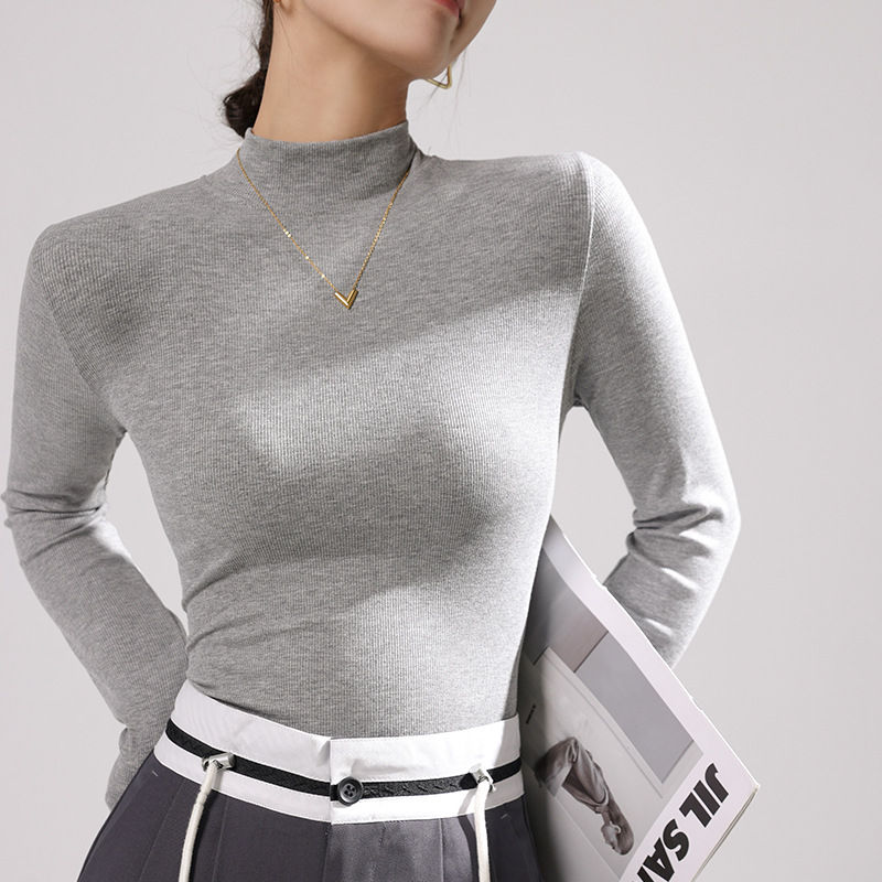 Threaded cotton half turtleneck bottoming shirt Women’s inner long sleeve autumn and winter 2024 Spring and Autumn New slim bottoming mid collar top