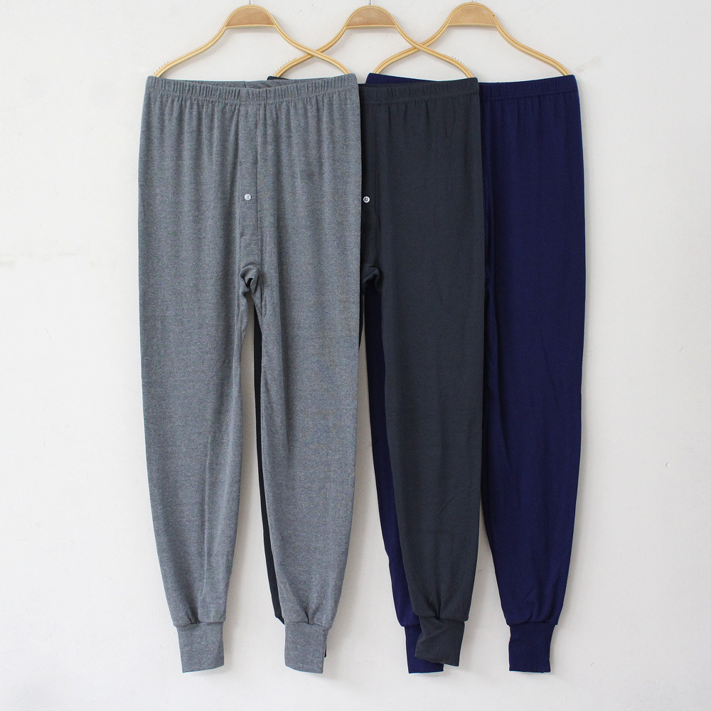 Threaded Cotton Men's Autumn Pants Mid-high Waist Dad's Base Pants Plus Large Size Middle-aged and Elderly Single Autumn Pants