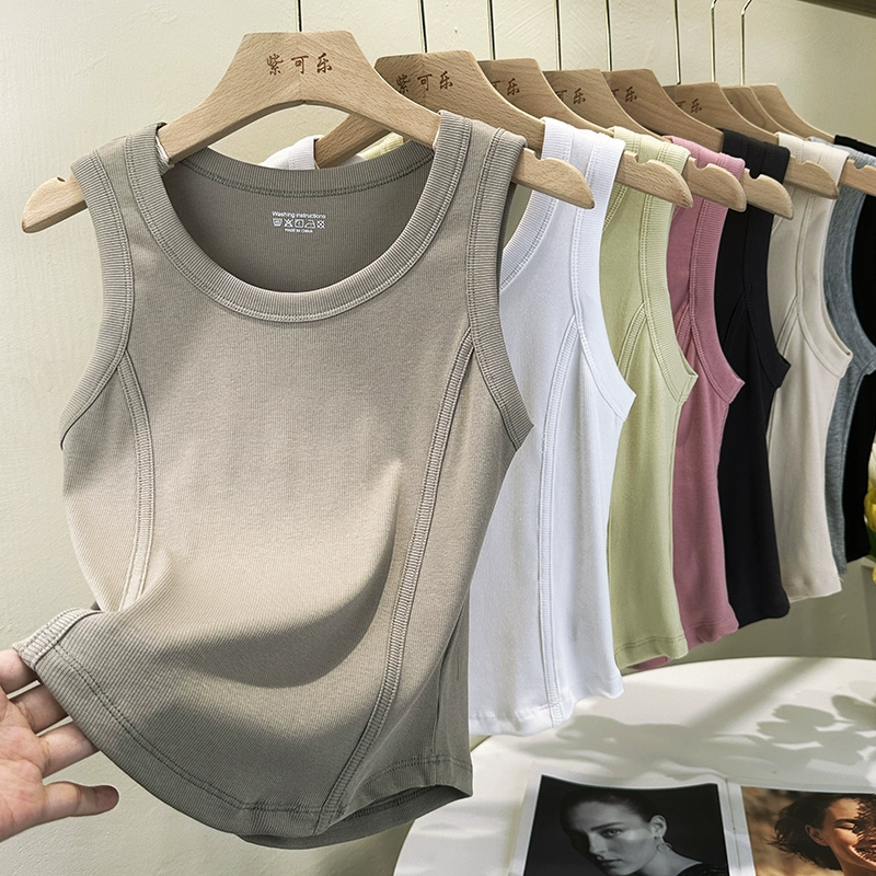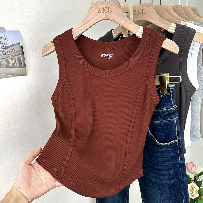 | nameOriginal | Threaded cotton sleeveless bottoming shirt, slimming and versatile vest |