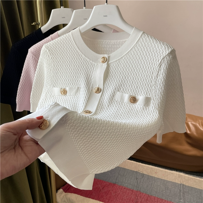 | nameOriginal | Threaded ice silk crew neck pullover single-breasted sweater |