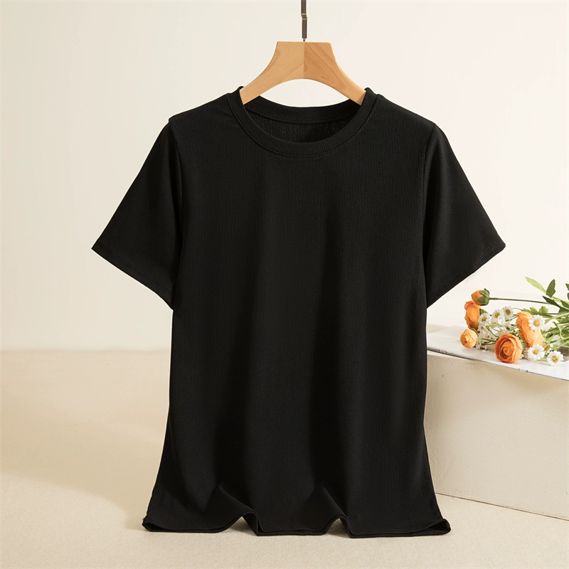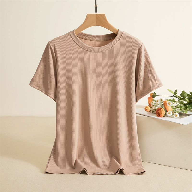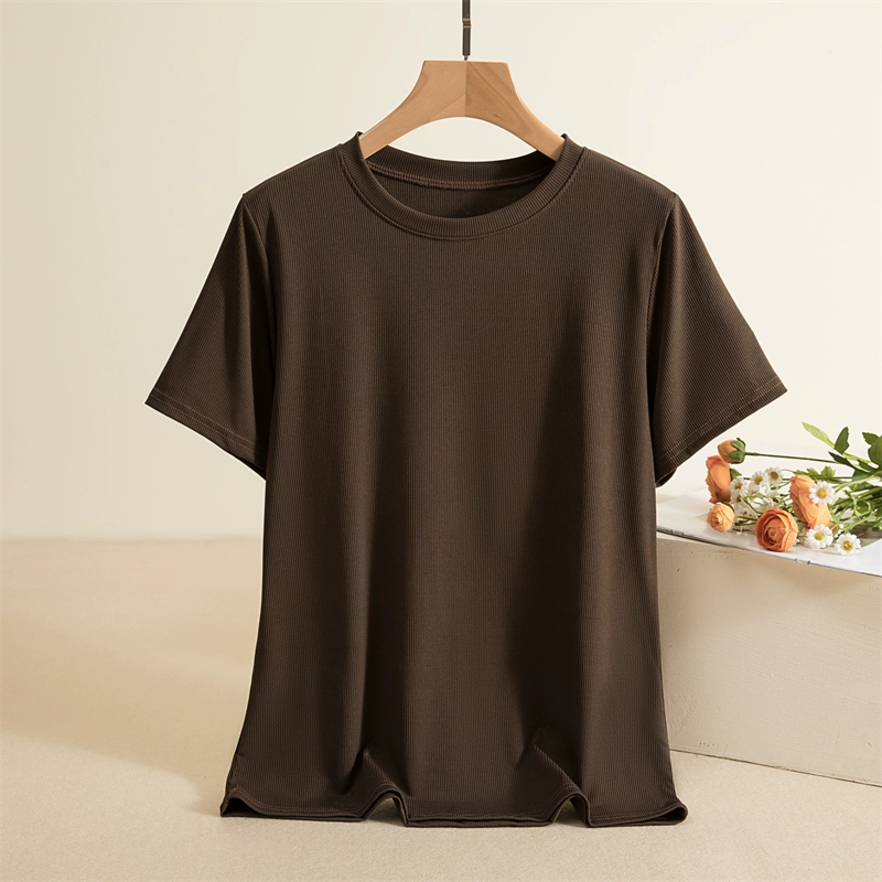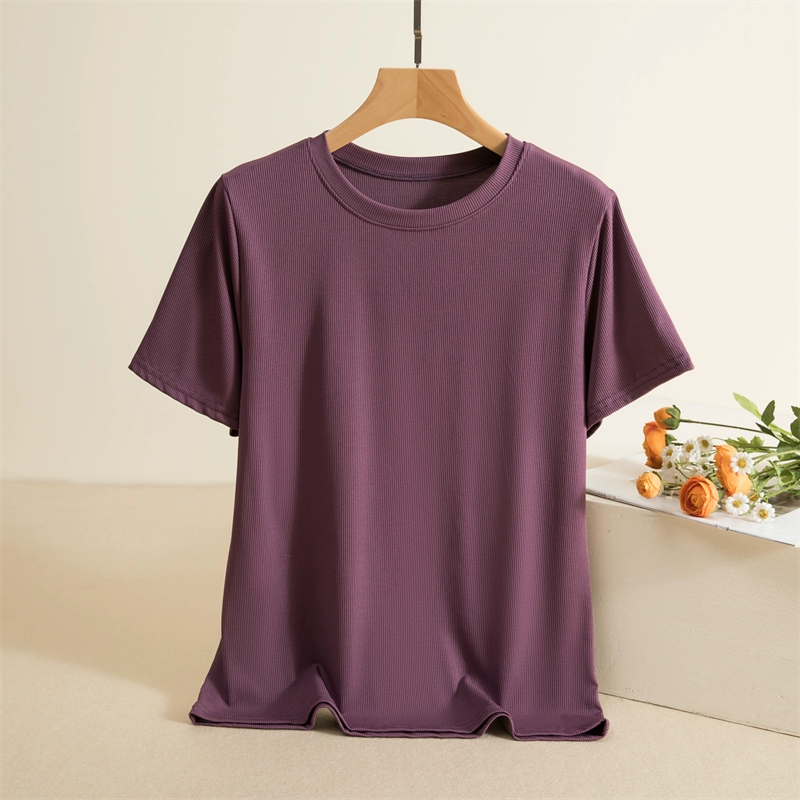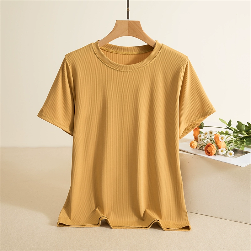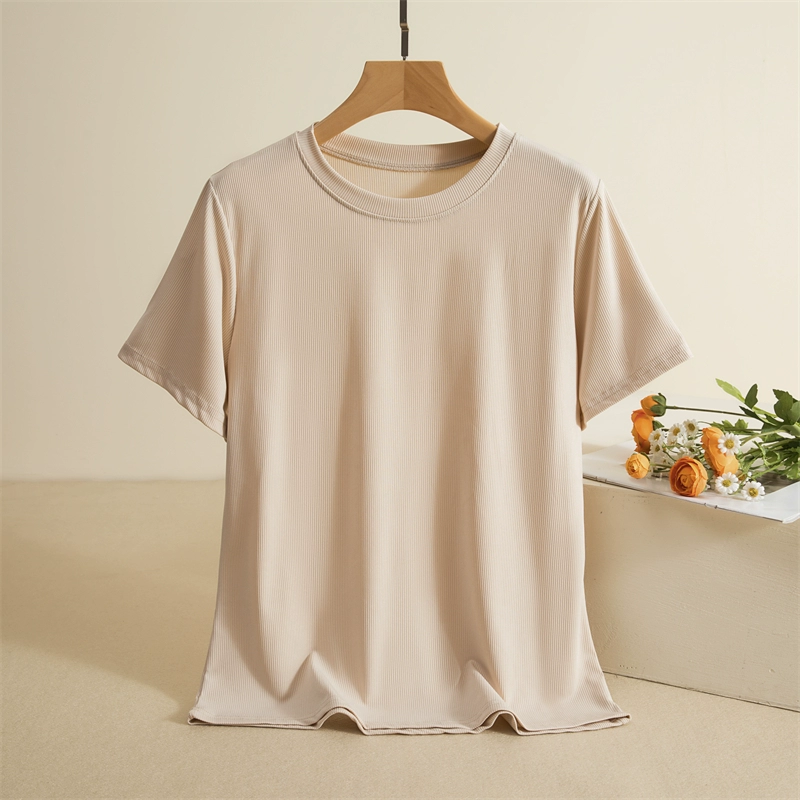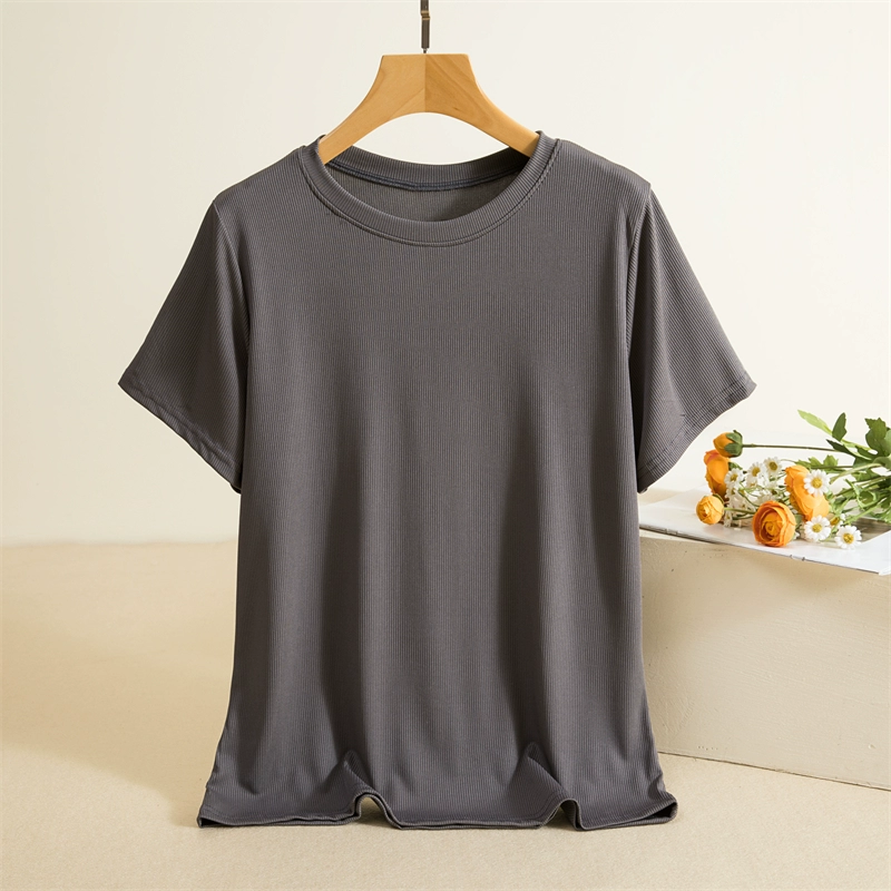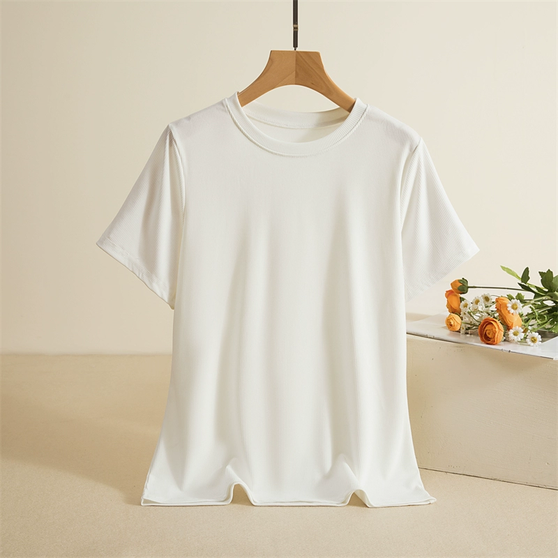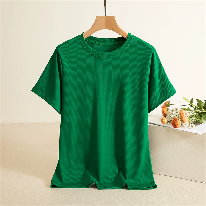 Threaded round neck short sleeve slim solid color thin T-shirt