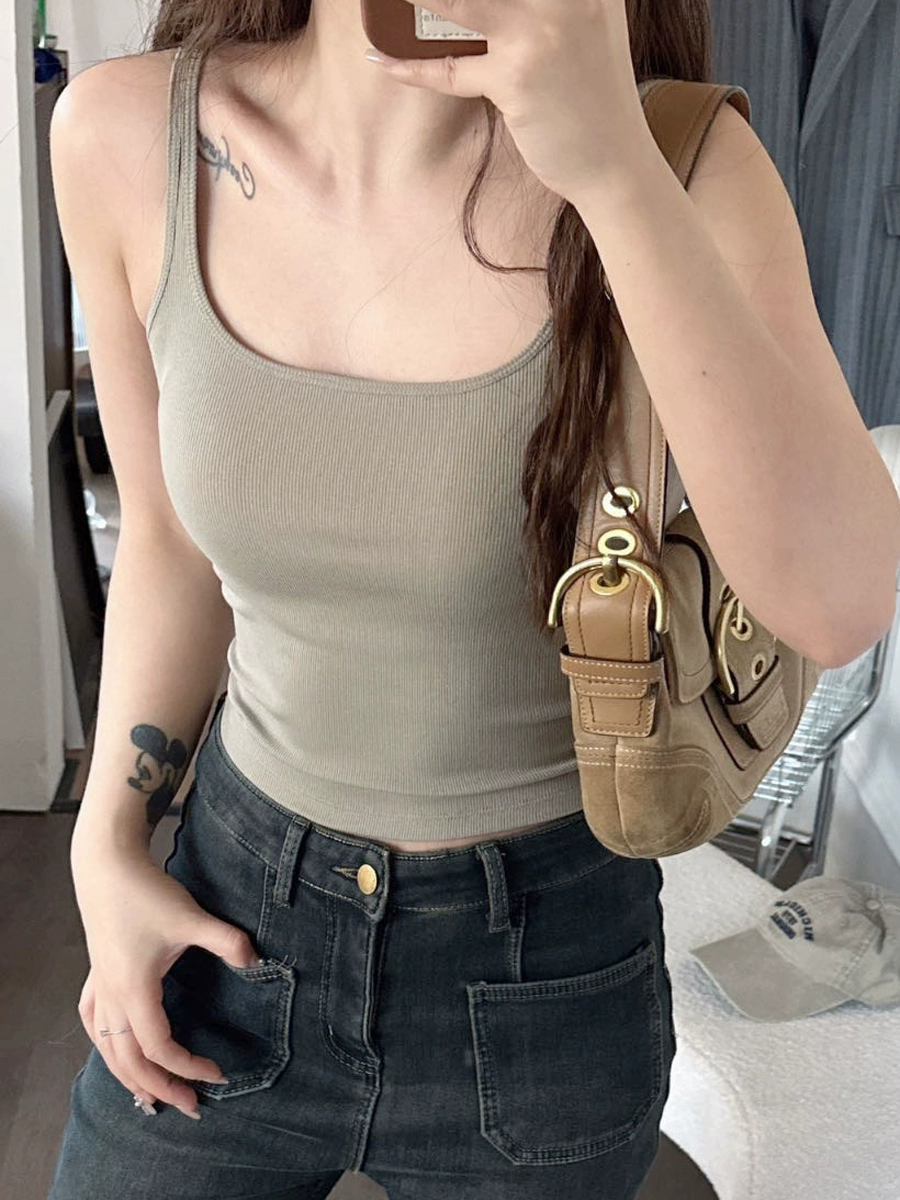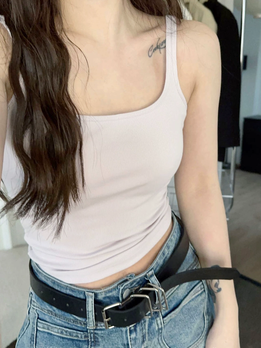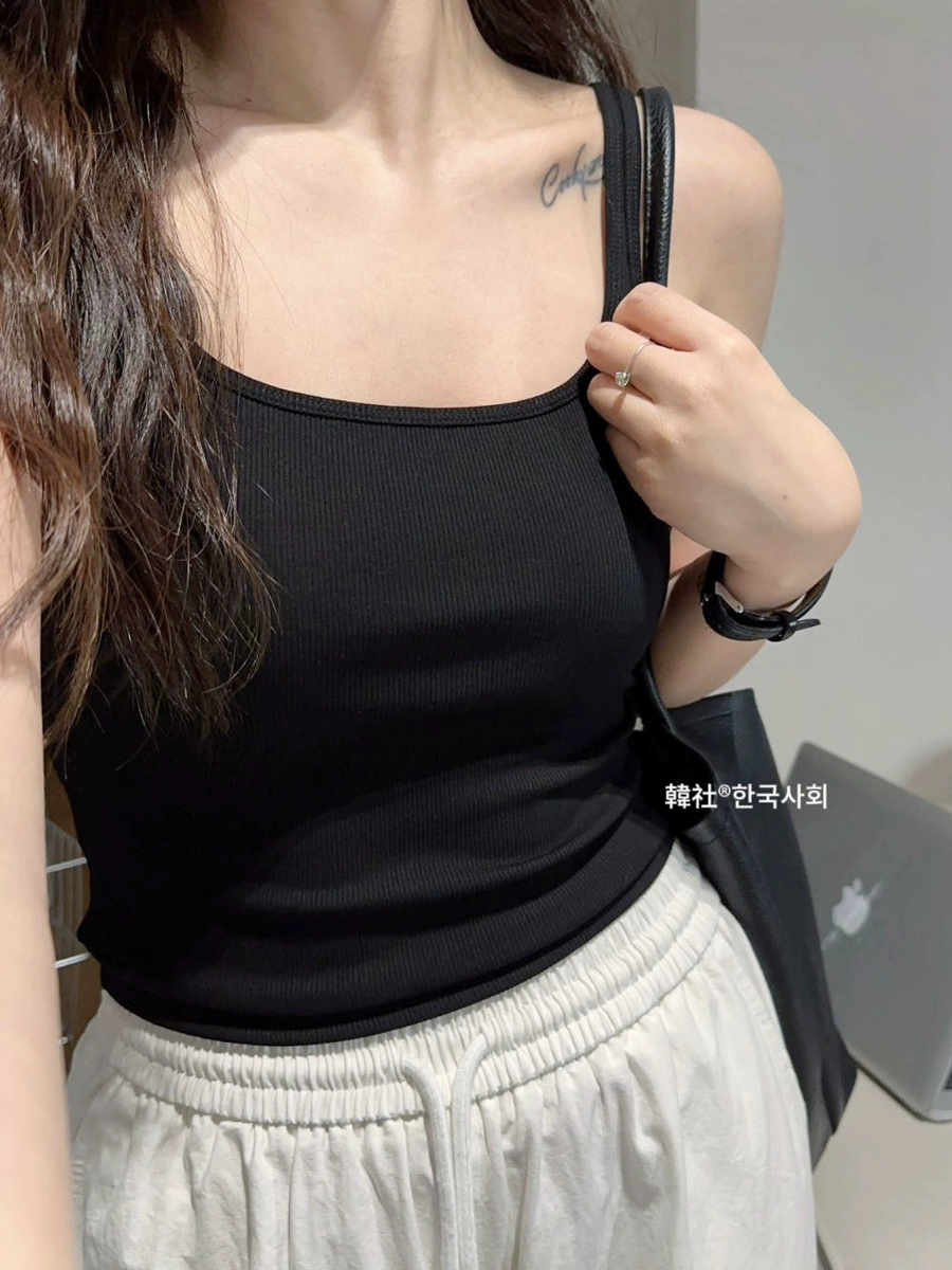 Threaded small square collar, busty and slim waist, self-padded camisole for women, bra anti-exposure underwear as base