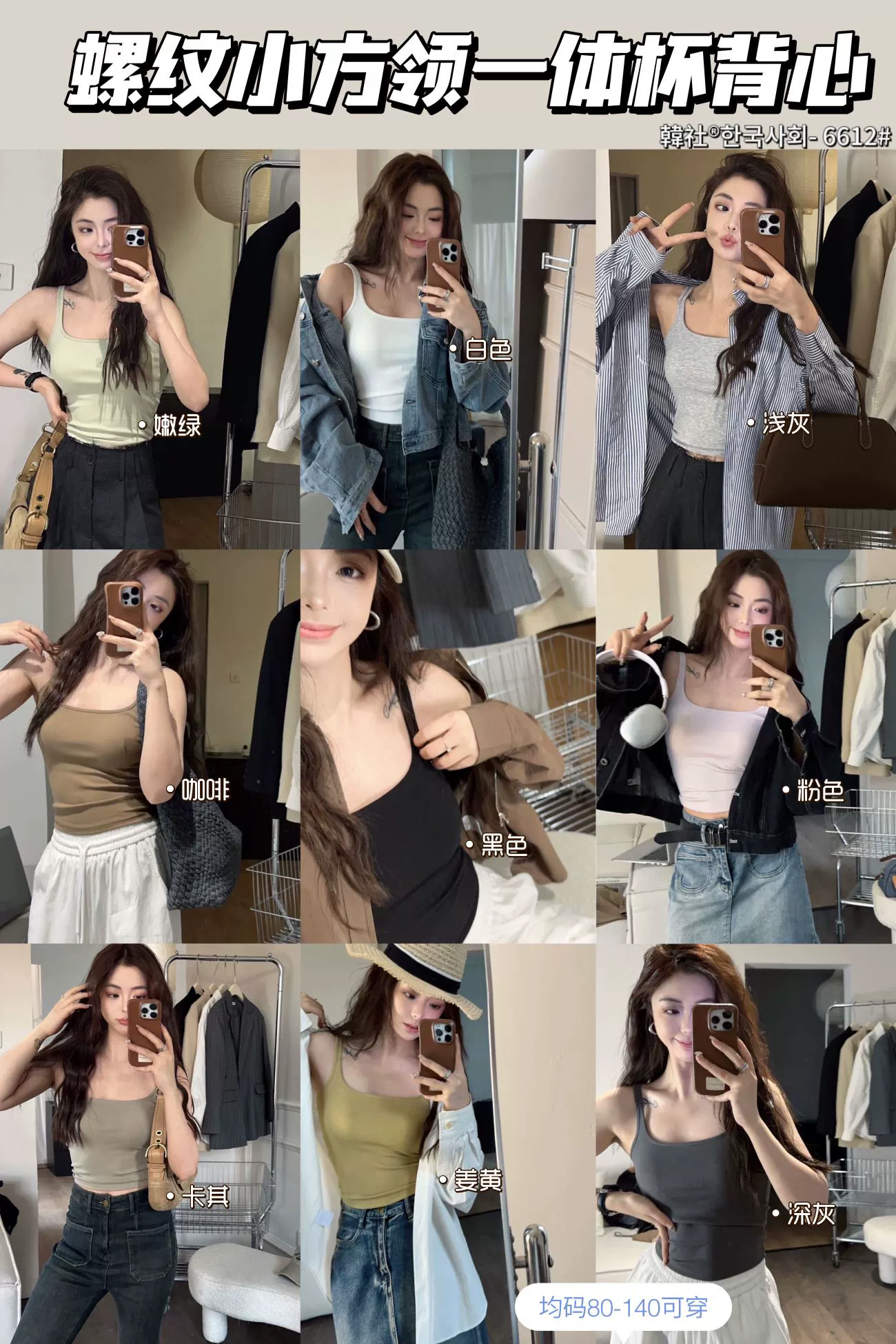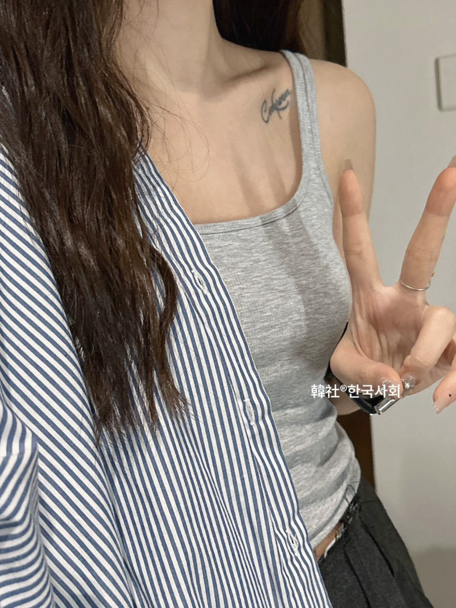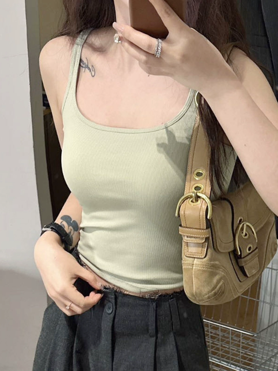 Threaded small square collar, busty and slim waist, self-padded camisole for women, bra anti-exposure underwear as base