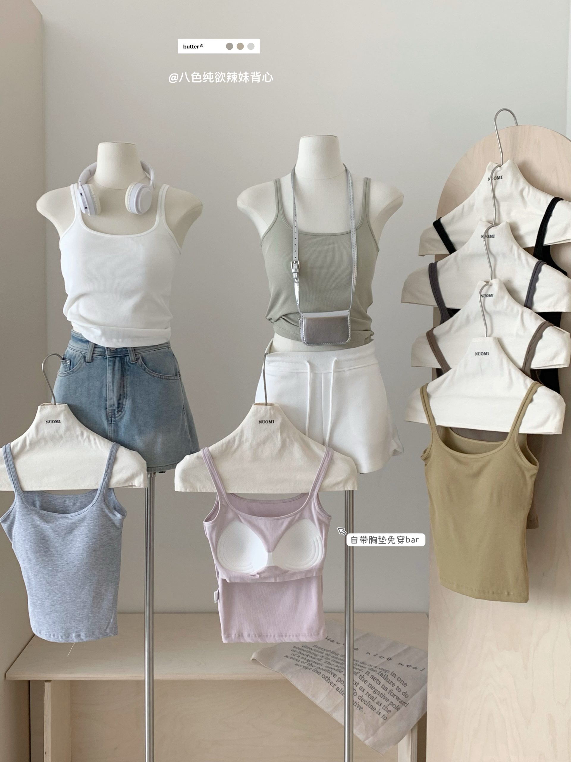 Threaded small square collar, busty and slim waist, self-padded camisole for women, bra anti-exposure underwear as base