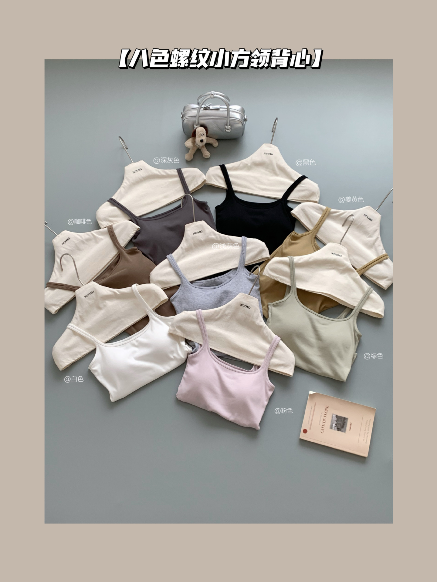 | nameOriginal | Threaded Small Square Collar Showing Chest and Waist Showing Thin Self-contained Chest Pad Camisole Vest Women's Inner Bra Anti-running Light Underwear Base |