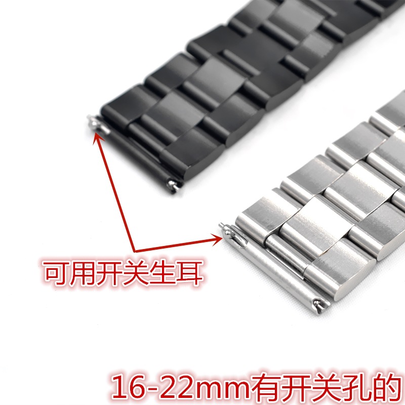 Three beads diving Middle light edge sand solid stainless steel strap side snap switch hole 14 – 26 28 30mm