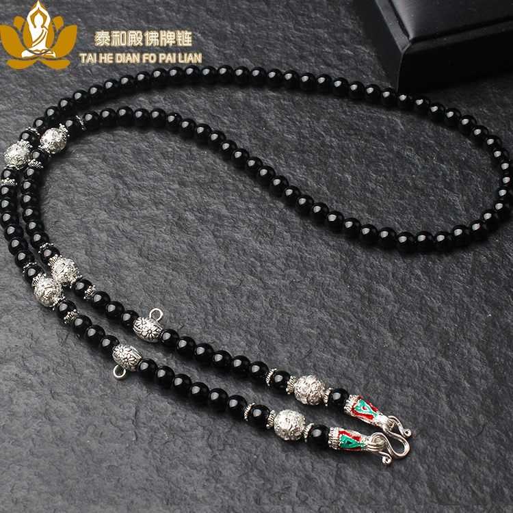 Three Buddhist amulets for men and women, hanging chain pendants, black onyx