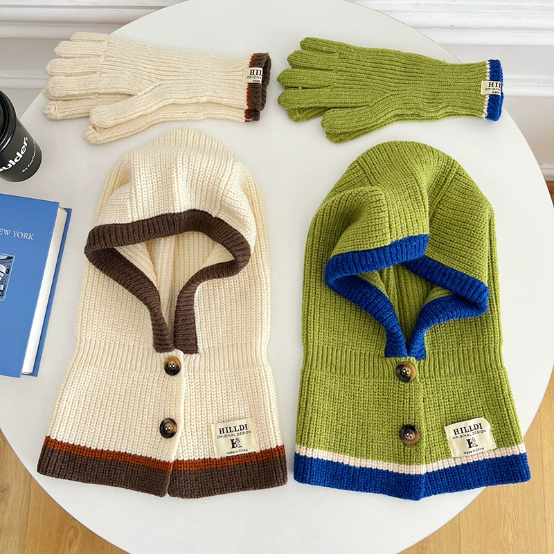 | nameOriginal | Three-color balaclava two-piece set Korean style winter versatile button gloves scarf knitted hat for women |