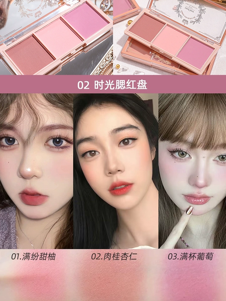 | nameOriginal | Three-color blush plate afternoon tea nude makeup natural sunburn female purple orange powder roasted milk tea color 2023 new hot style authentic |