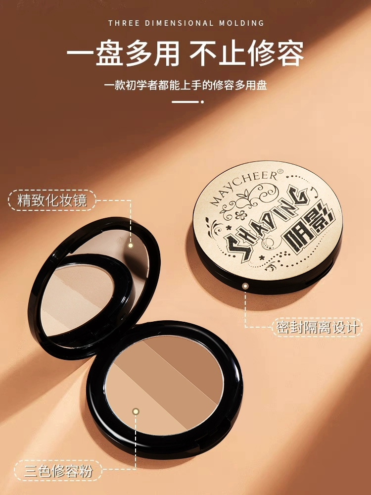 Three-color contouring powder palette matte shadow nose and silhouette all-in-one palette face natural three-dimensional combination powder for women three-in-one