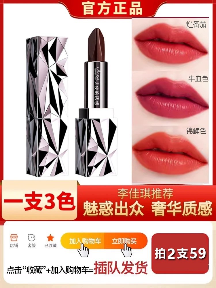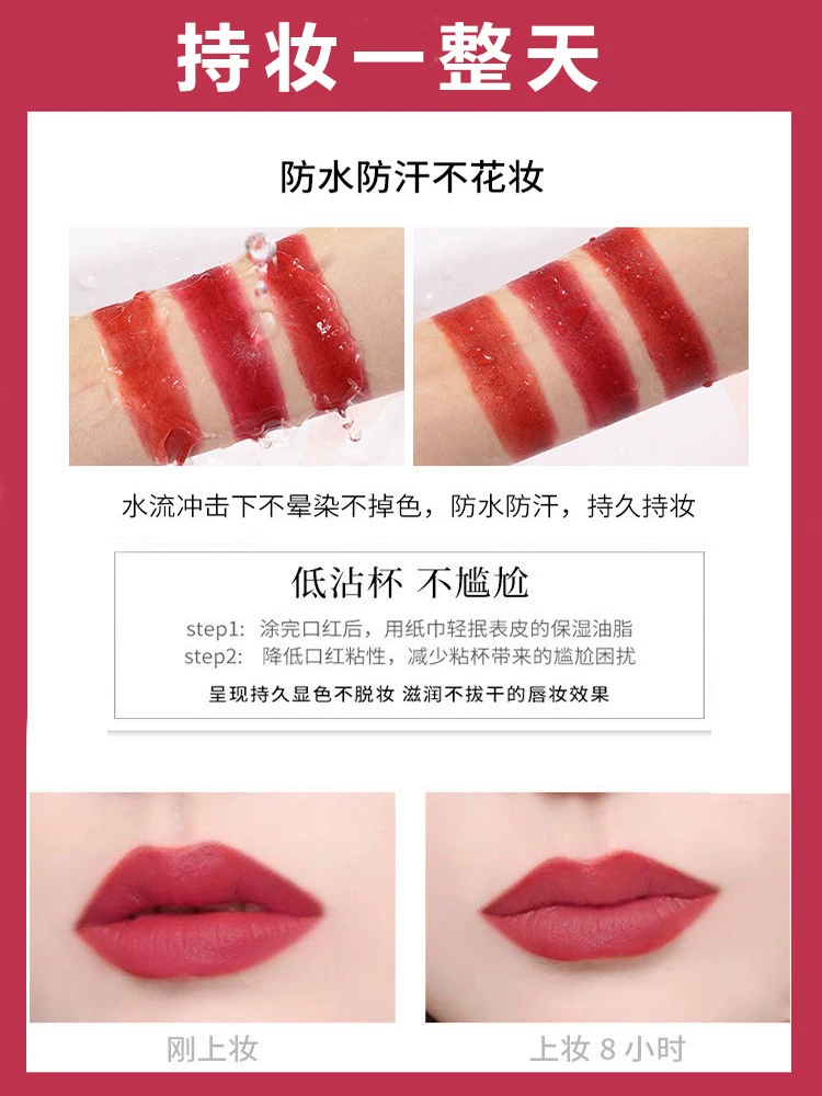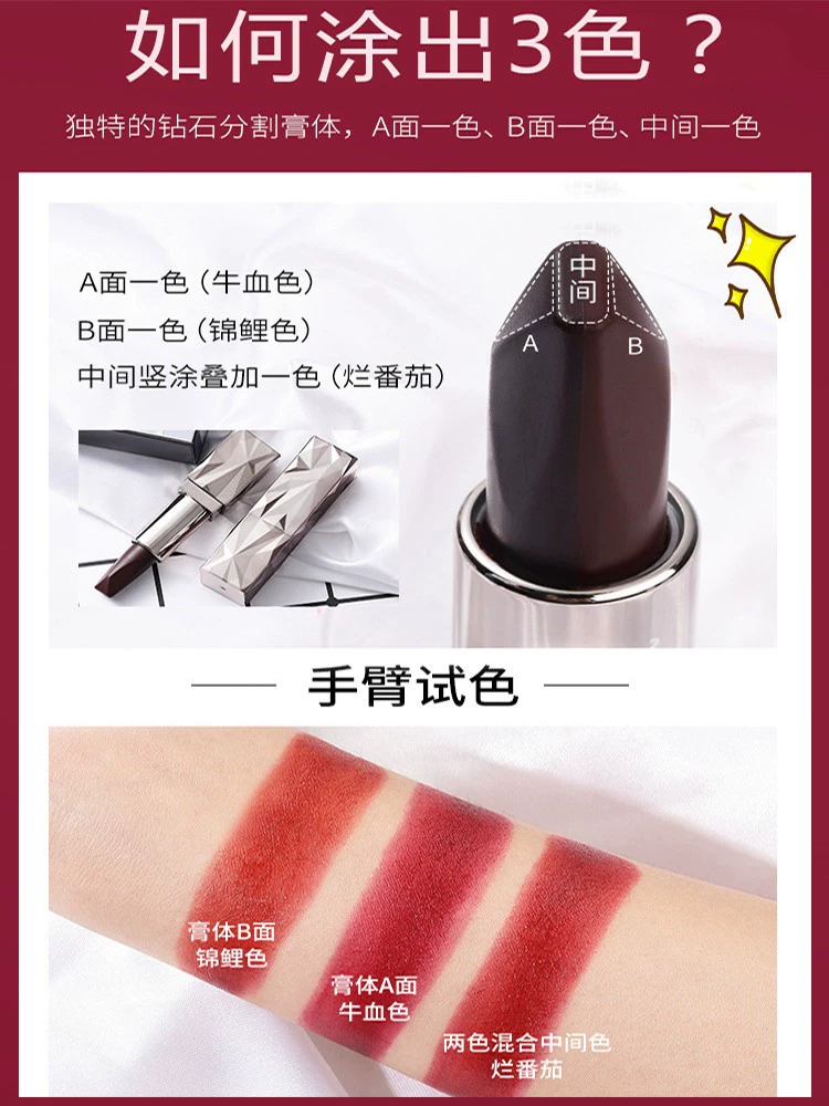 Three-color lipstick, non-fading, non-stick cup, genuine waterproof, non-fading, moisturizing lip balm, niche brand