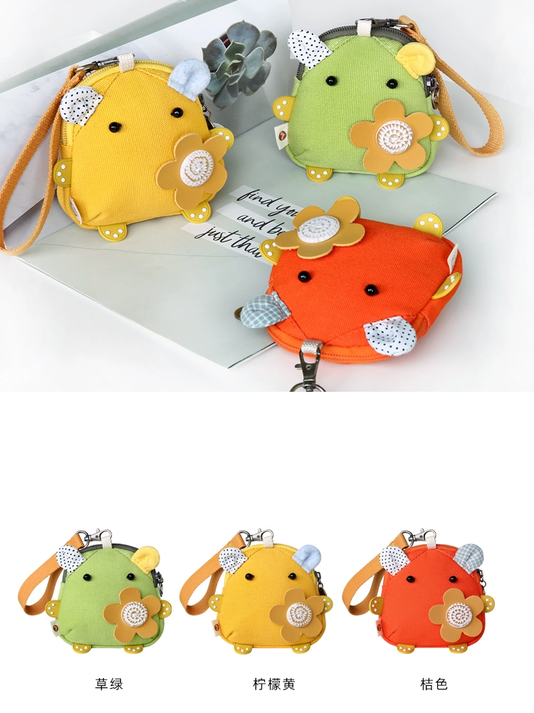 Three-color patch cartoon small wallet for women creative canvas student coin bag mini cute Korean fabric coin purse
