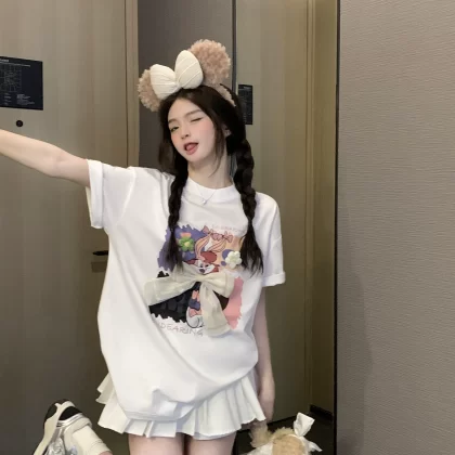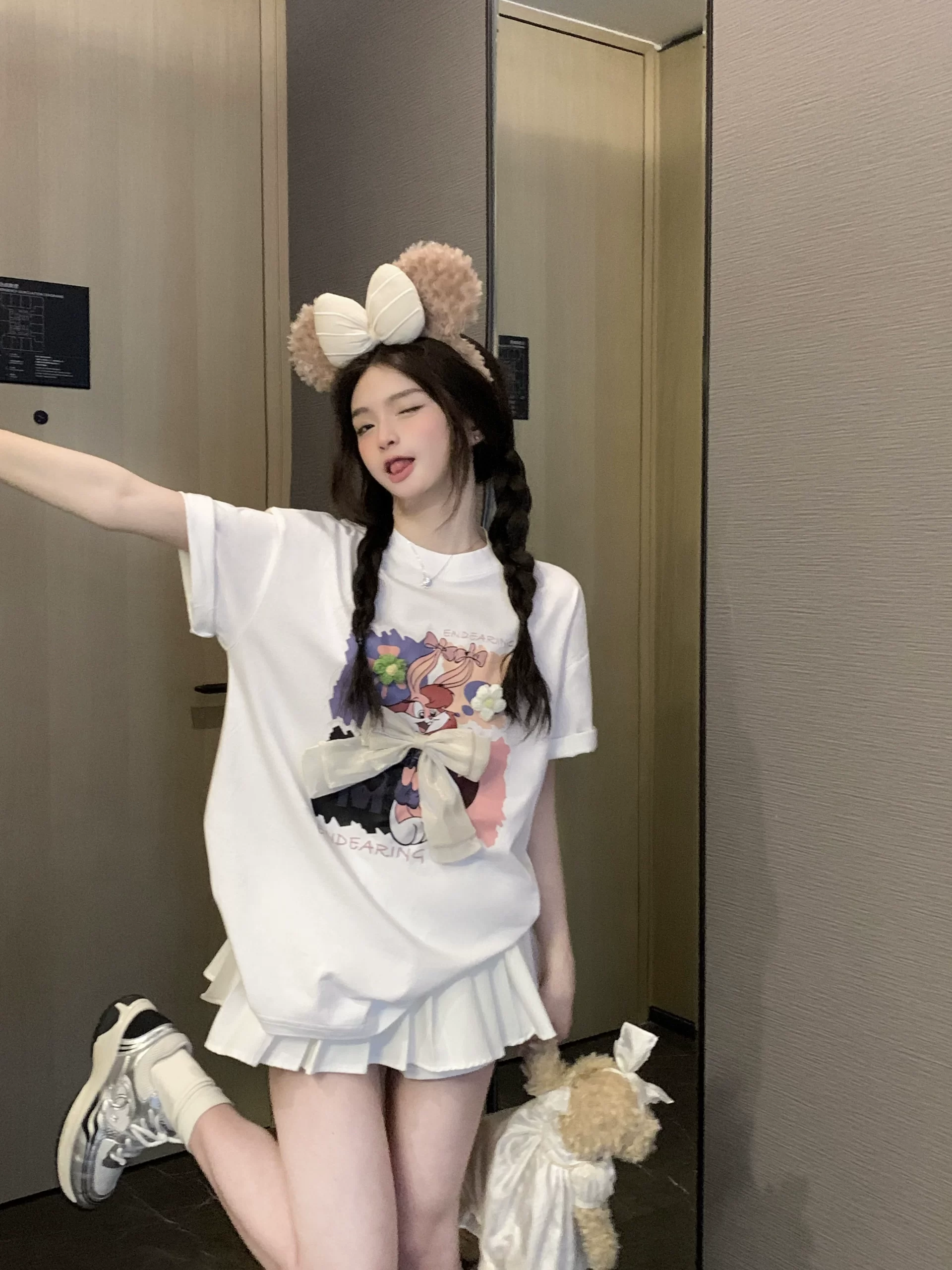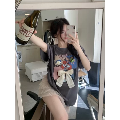 | nameOriginal | Three-dimensional bow short-sleeved casual mid-length cartoon |
