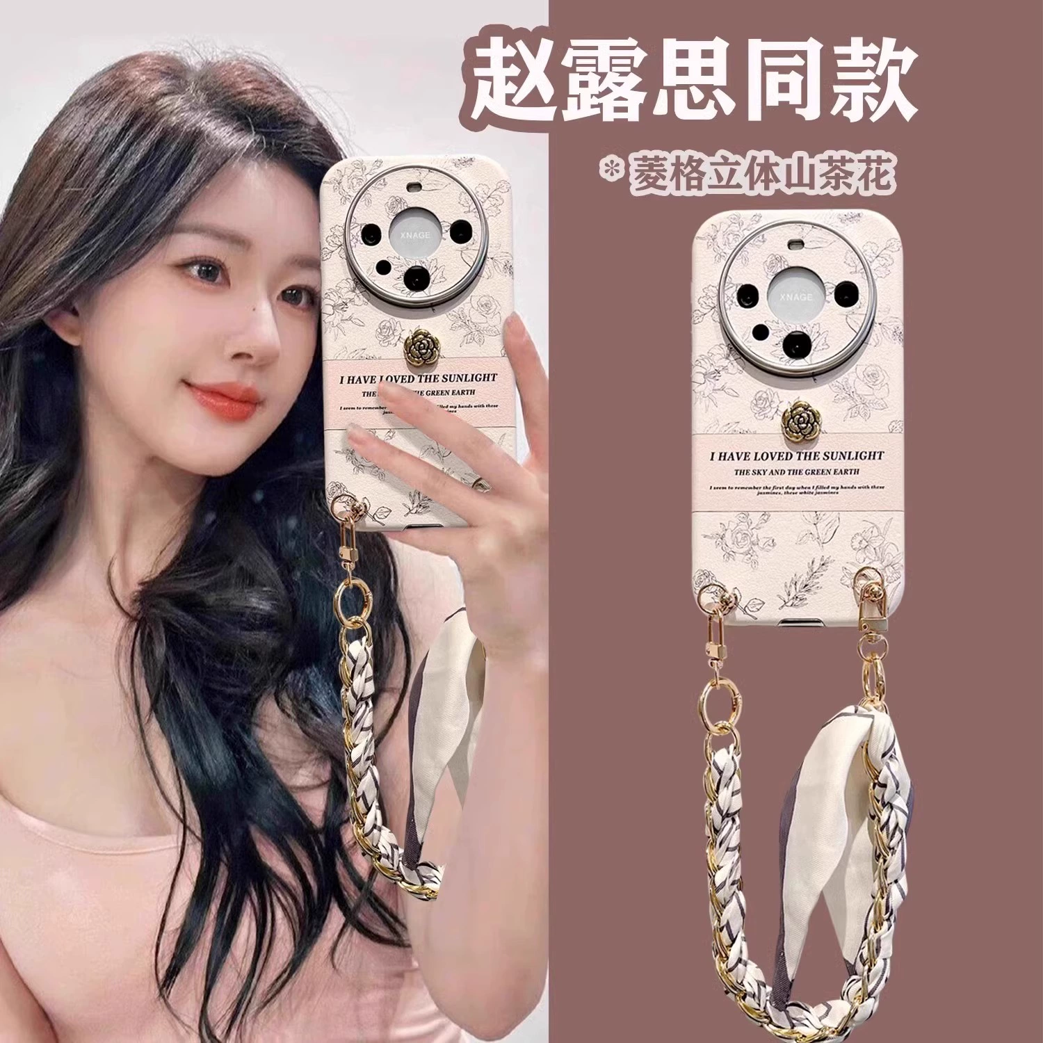Three-dimensional camellia suitable for Huawei mate70pro+ mobile phone case m60pro new light luxury small fragrance style mate40pro with bracelet ins high-end women’s mate50pro protective case m70