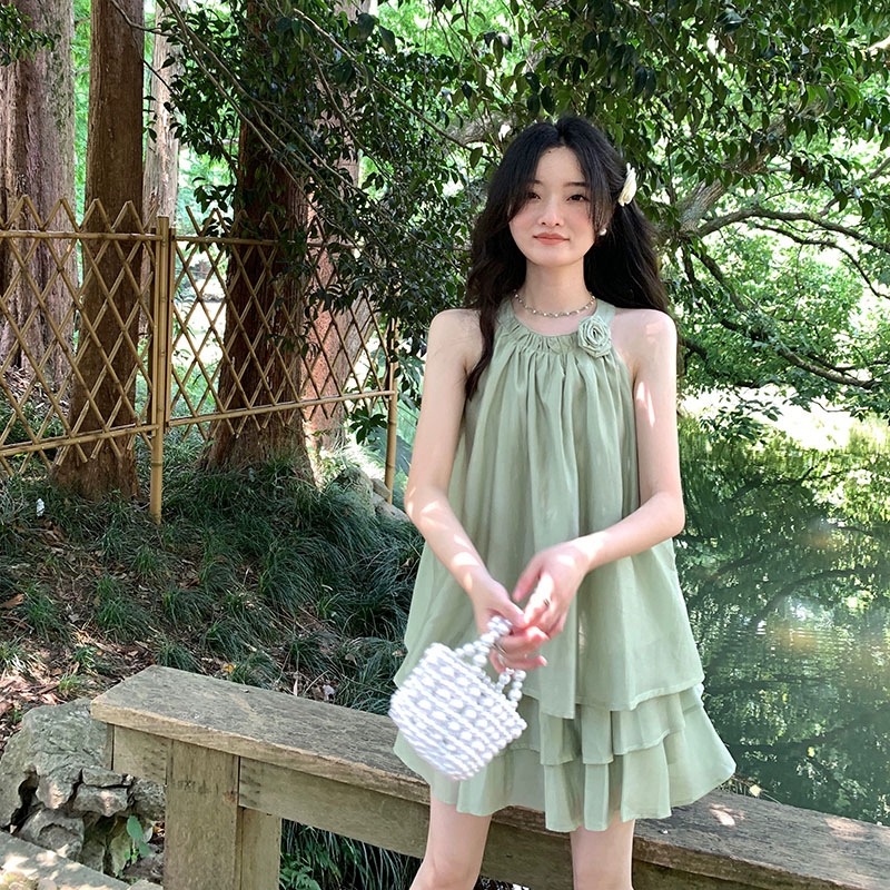 | nameOriginal | Three-dimensional halterneck sleeveless shirt with high waist and slimming flowers |