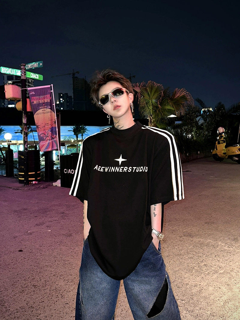 | nameOriginal | Three-dimensional high-end contrast striped casual half-sleeve embroidery |
