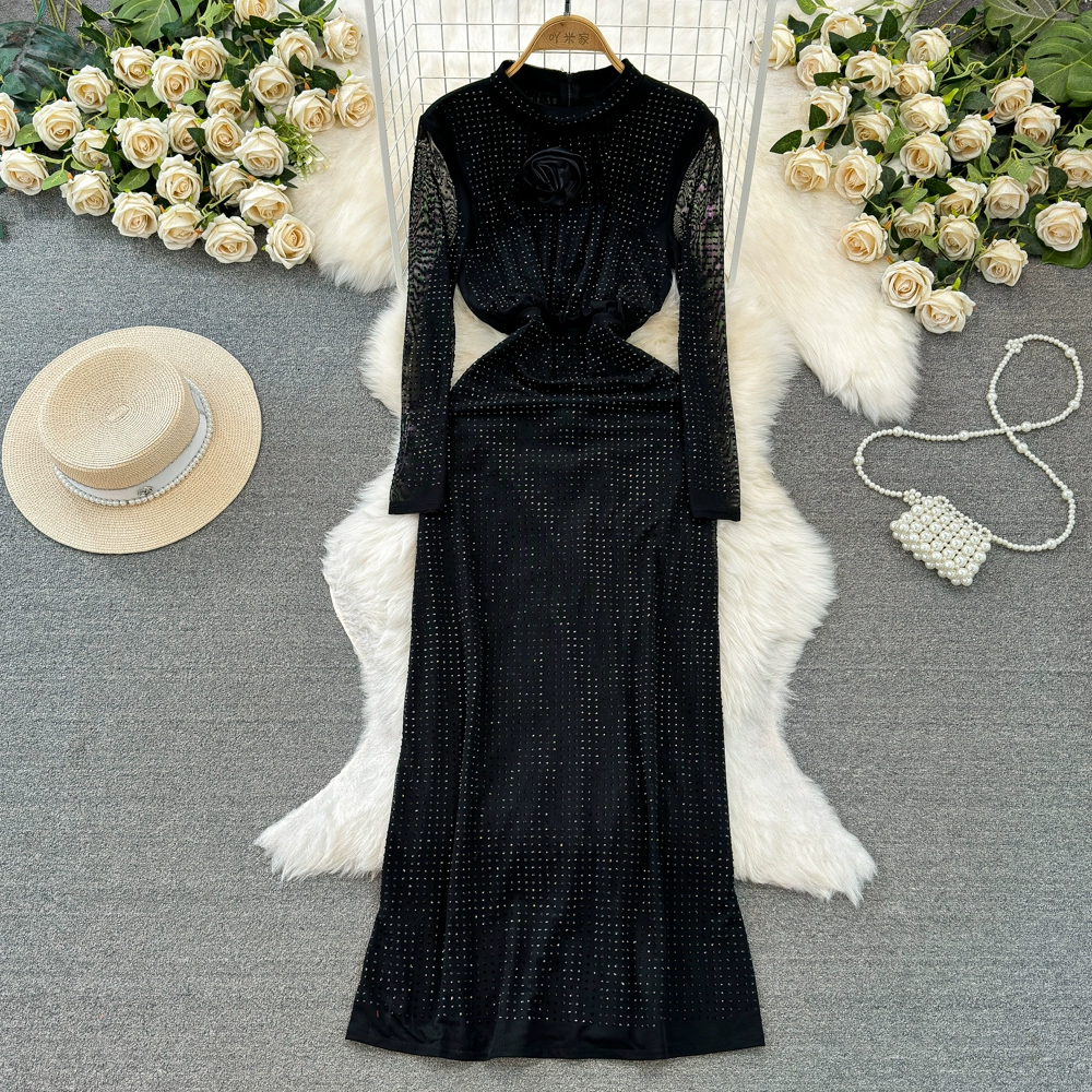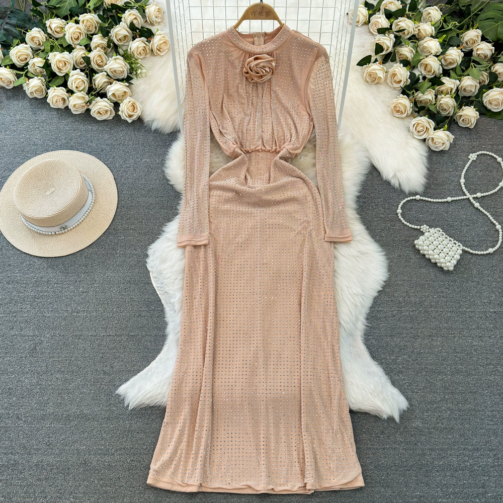 | nameOriginal | Three-dimensional hip-hugging sequined mesh dress with elegant flowers |