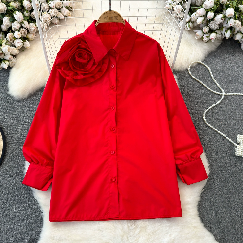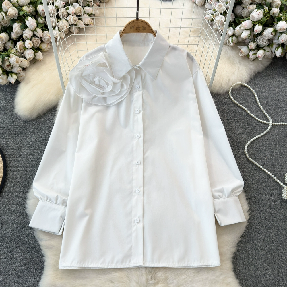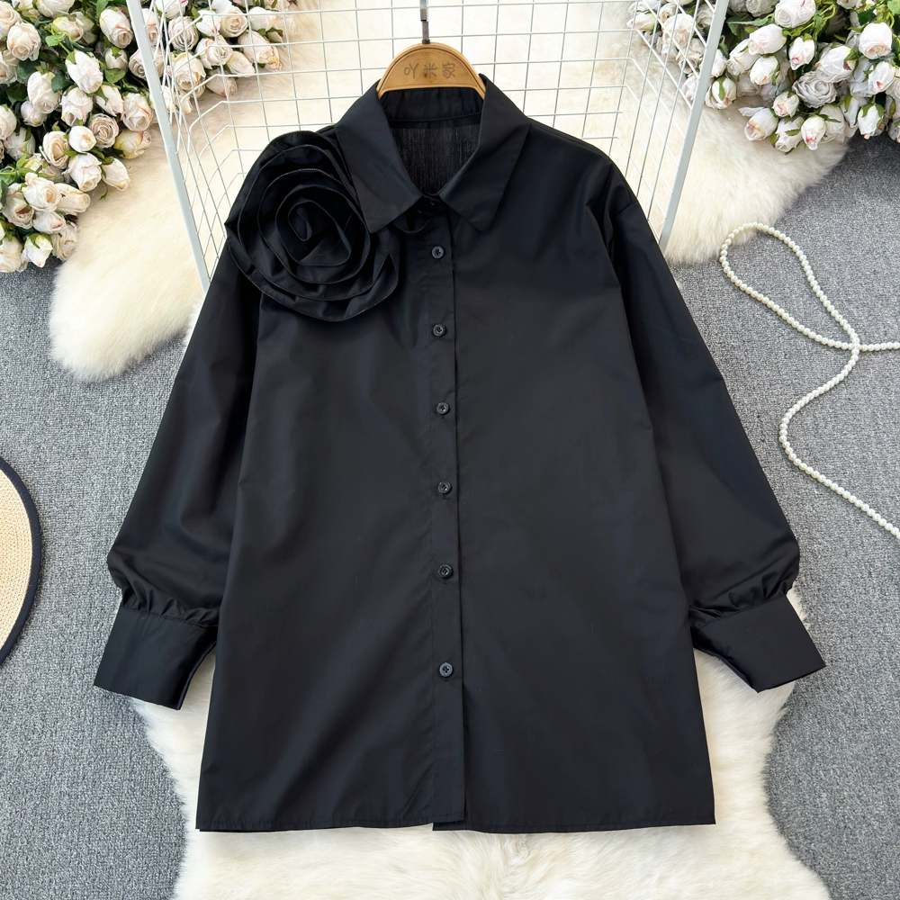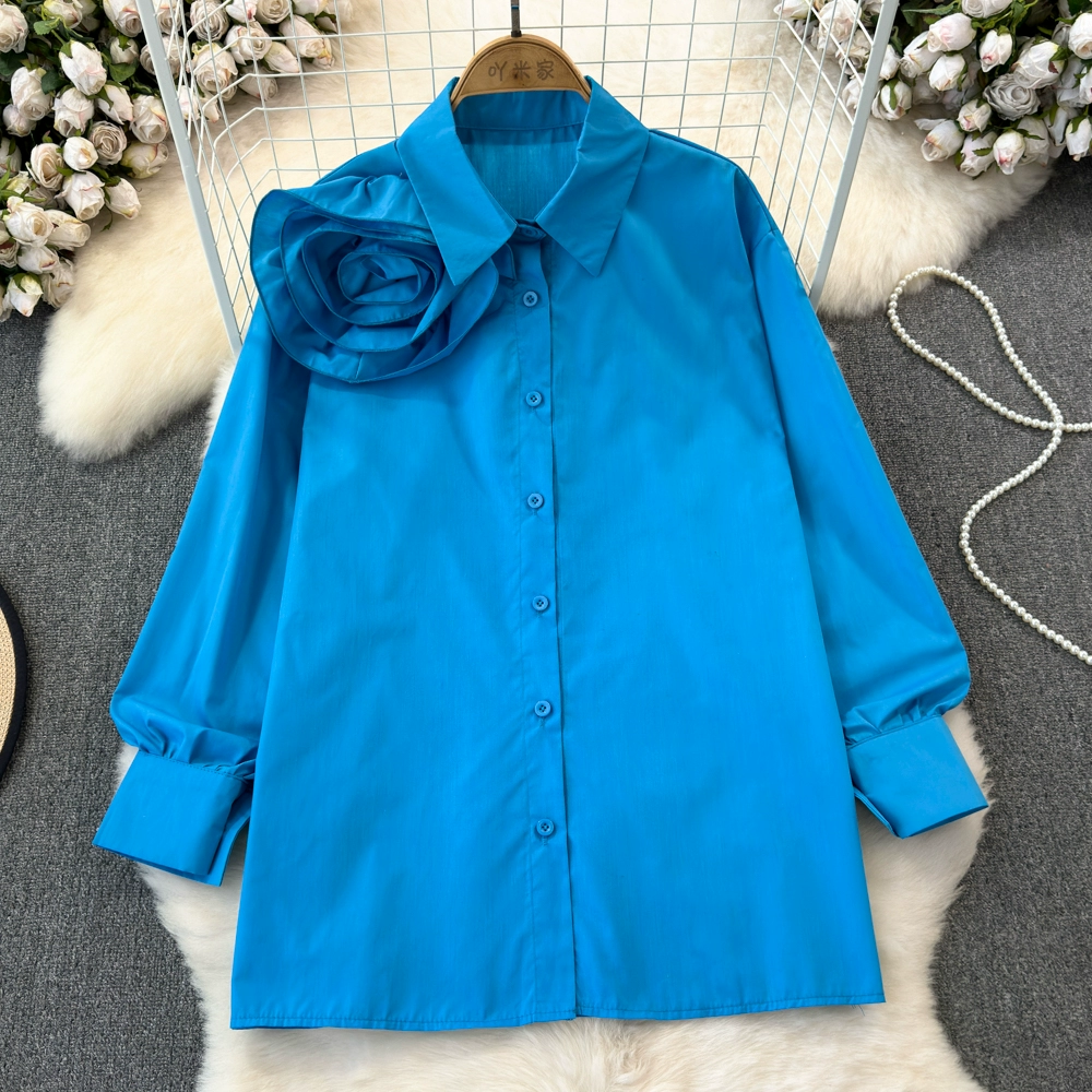 | nameOriginal | Three-dimensional long-sleeved lapel single-breasted solid color casual flower |