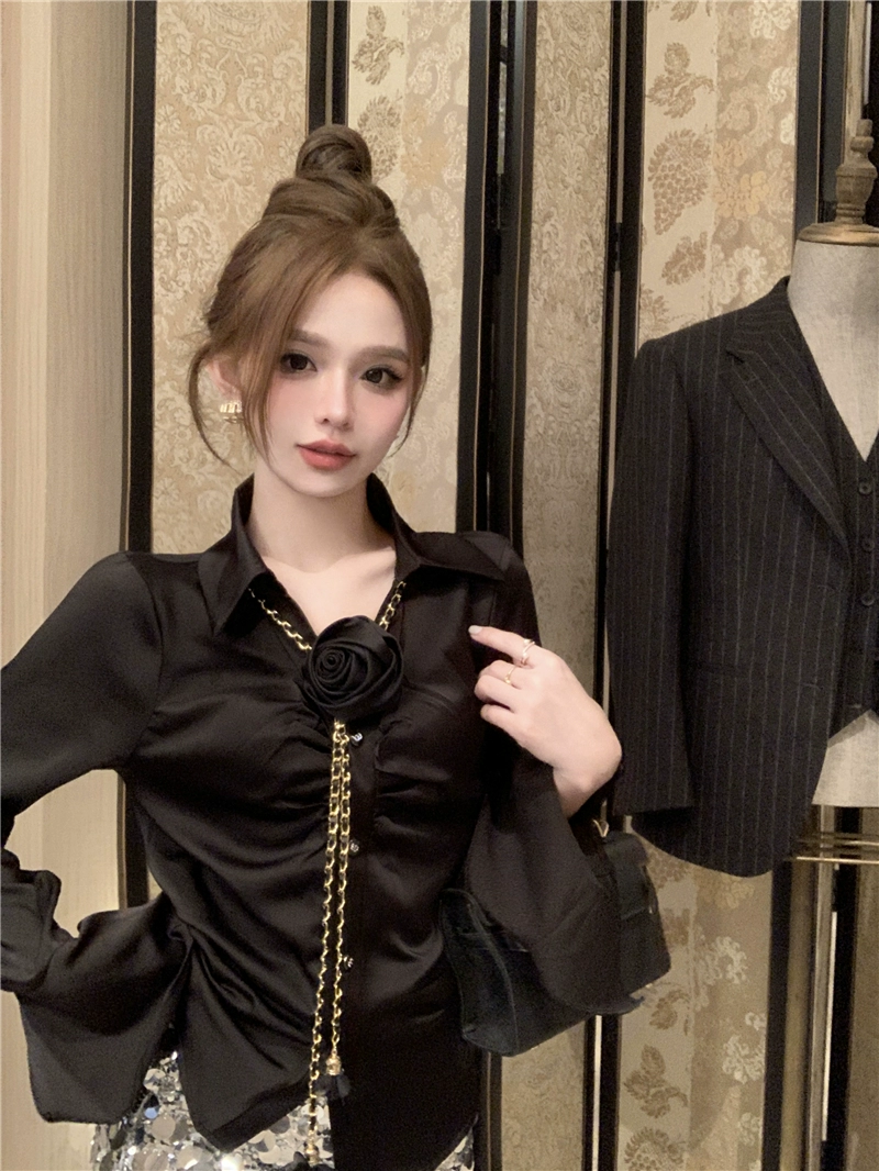 Three-dimensional long-sleeved white waisted niche pleated flowers