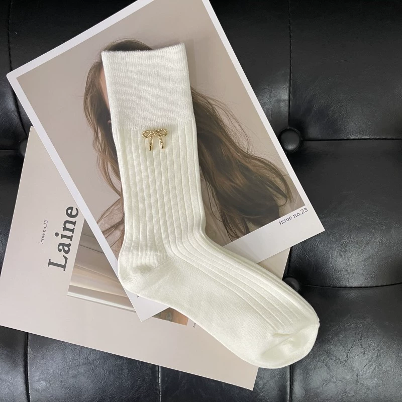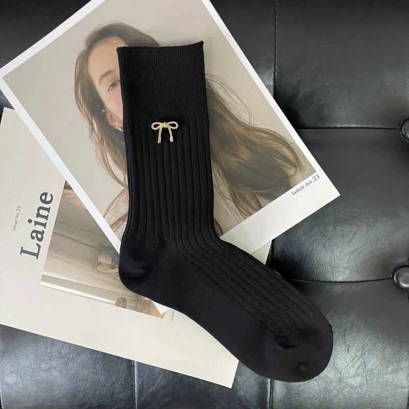 | nameOriginal | Three-dimensional metal texture gold bow double-needle black and white socks summer cute women's socks |