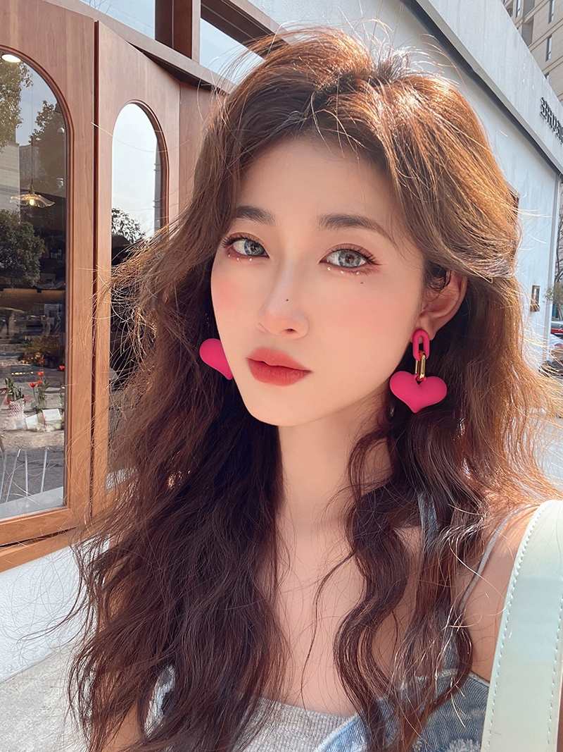 | nameOriginal | Three-dimensional peach heart exaggerated face slimming rose pink earrings |