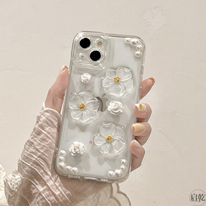 nameOriginal | Three-dimensional pearl daisy flower iPhone15/14 mobile phone case suitable for Apple 13promax epoxy soft shell 12/11 high-end xsmax niche xr creative 7/8plus start-up |