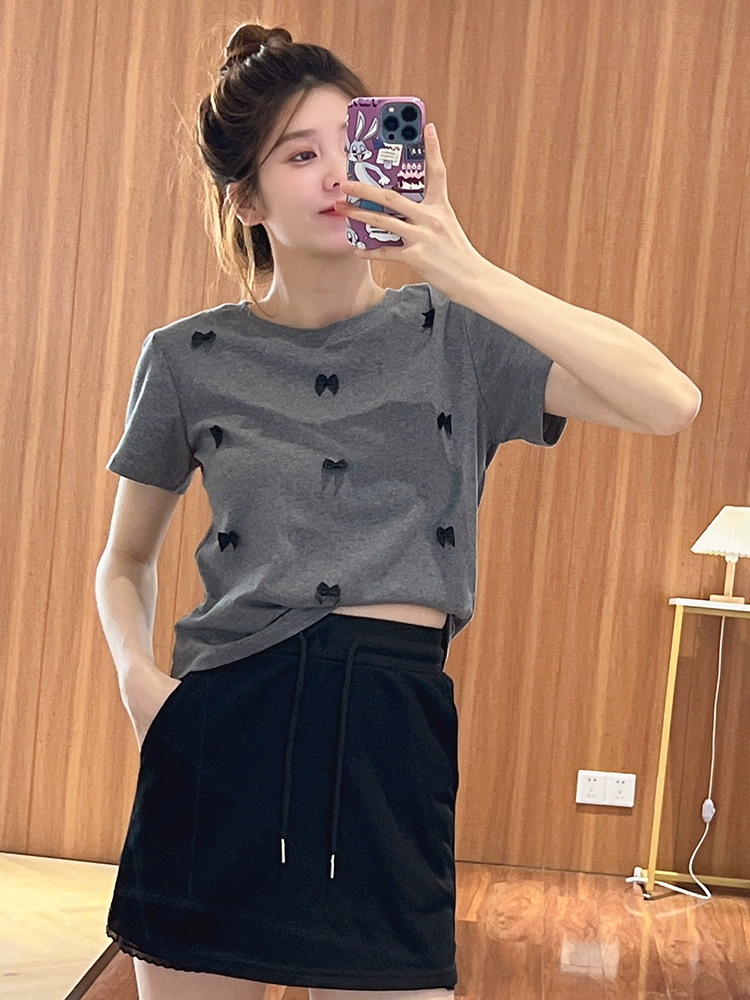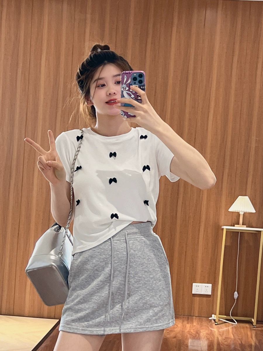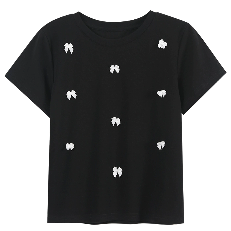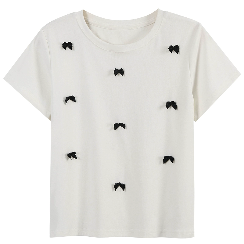 | nameOriginal | Three-dimensional short-sleeved summer sweet round neck top with bow |