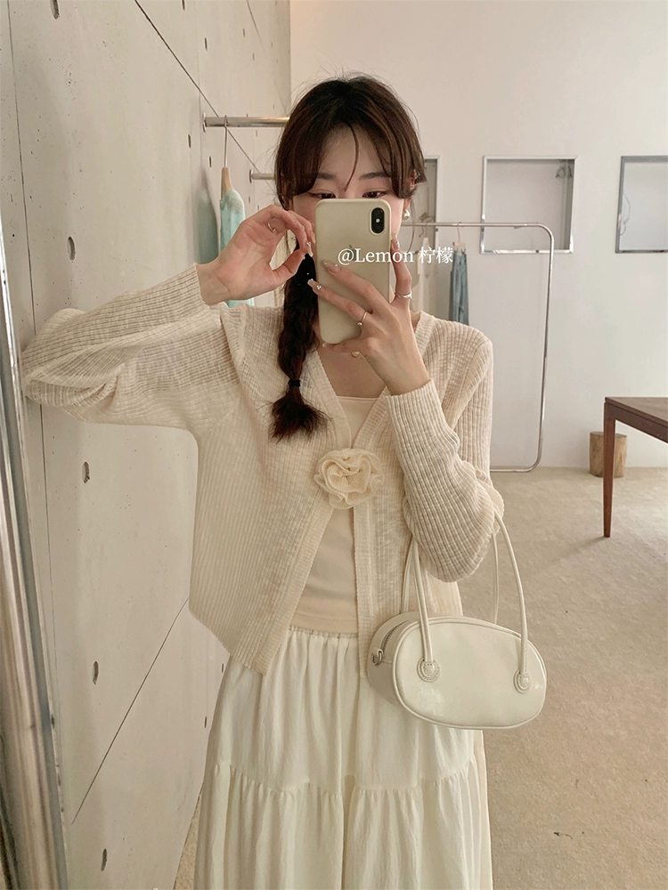 | nameOriginal | Three-dimensional solid color knitted cardigan short casual flower |
