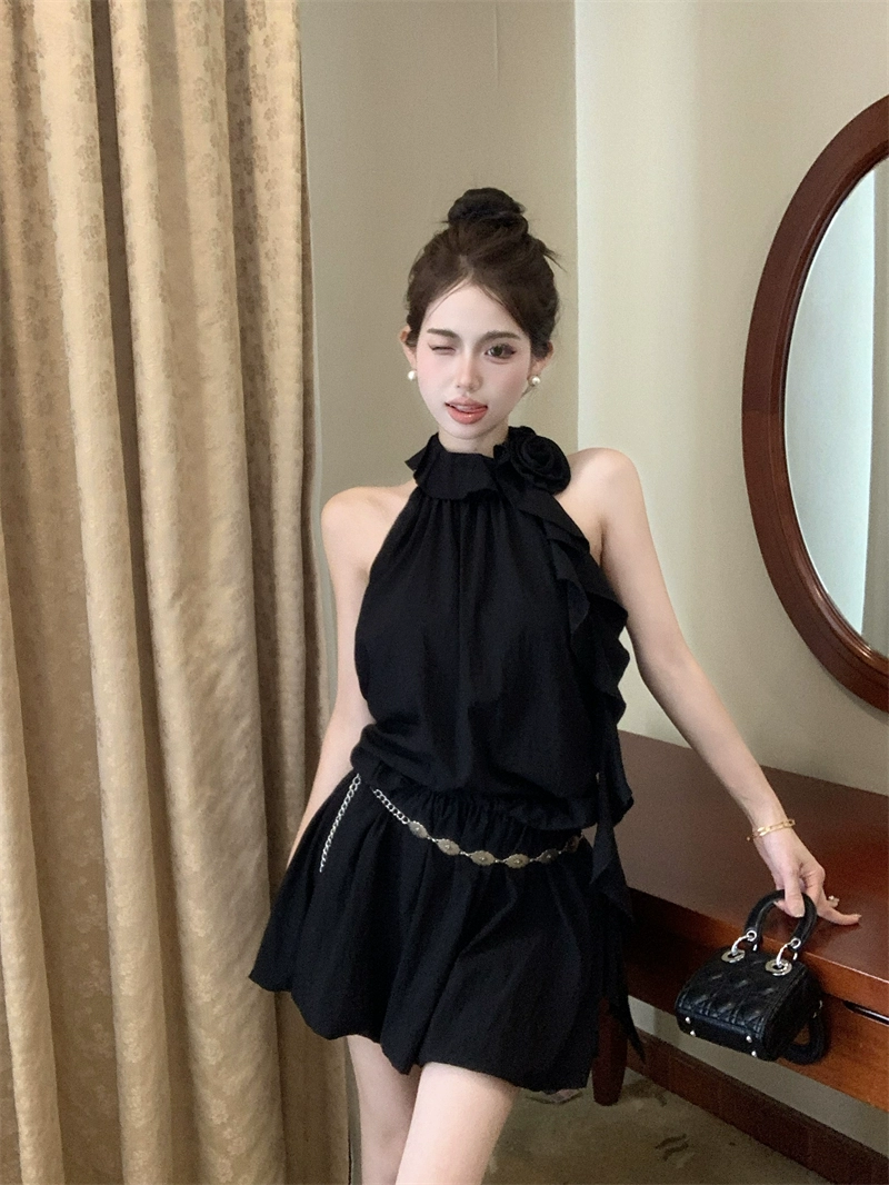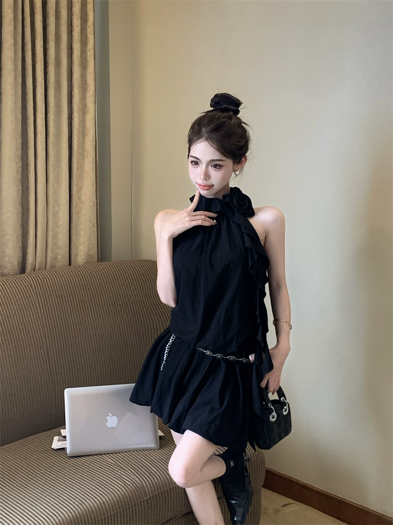 | nameOriginal | Three-dimensional summer black French backless a-line skirt with flowers |