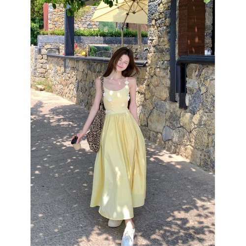 Three-dimensional suspender summer slim waist A-line skirt with flowers