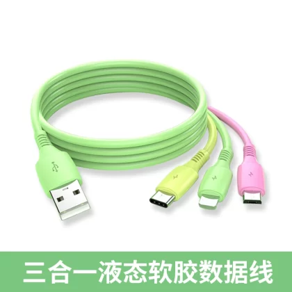 | nameOriginal | Three-in-one data cable mobile phone charging cable 3A current one-turn three-liquid soft rubber wire 0.5 meters 1 meter 1.5 meters |