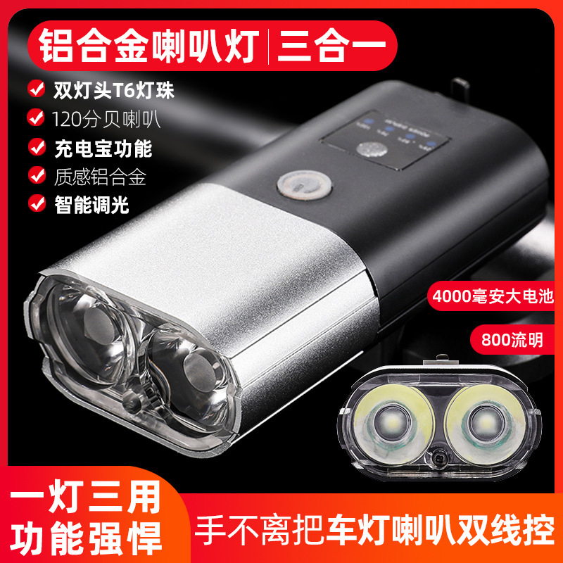 Three-in-one new aluminum alloy bicycle light headlight USB rechargeable mountain bike horn light highlight
