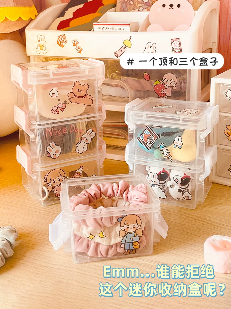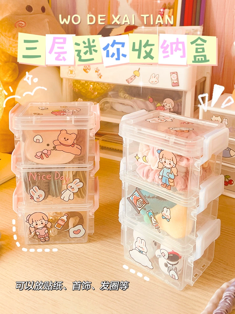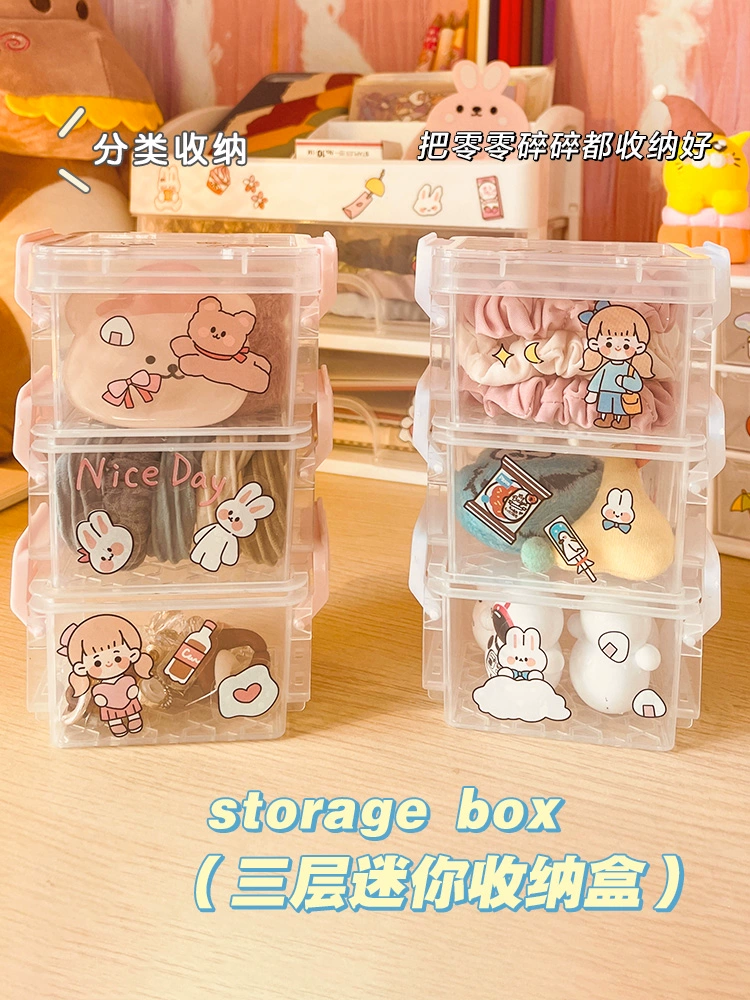 | nameOriginal | Three-layer handbook tape storage box jewelry box ins style portable female student transparent mini desktop storage box |