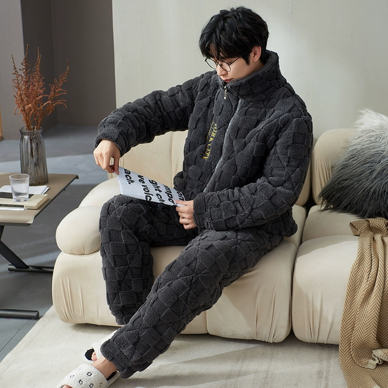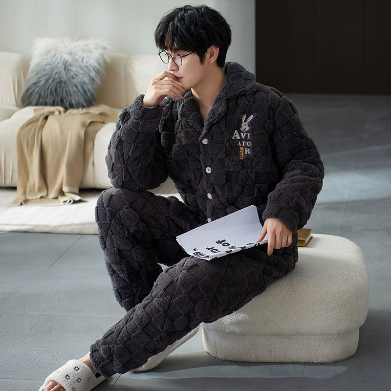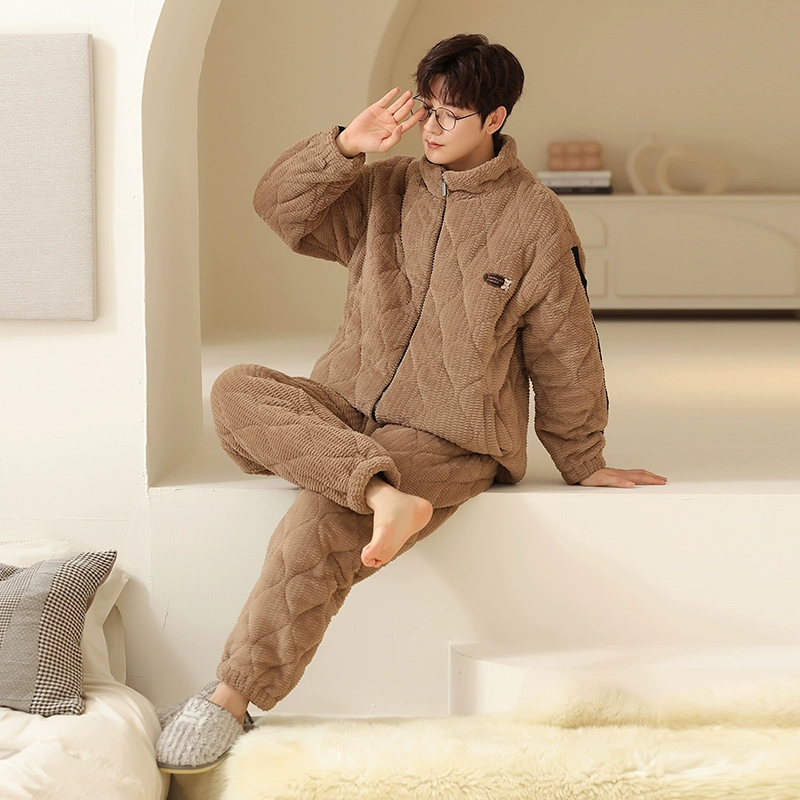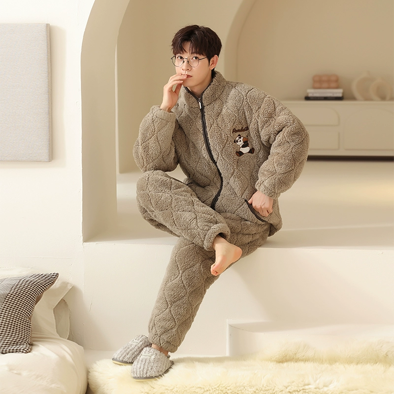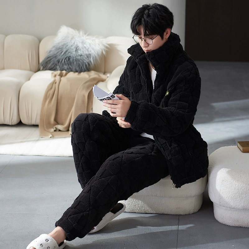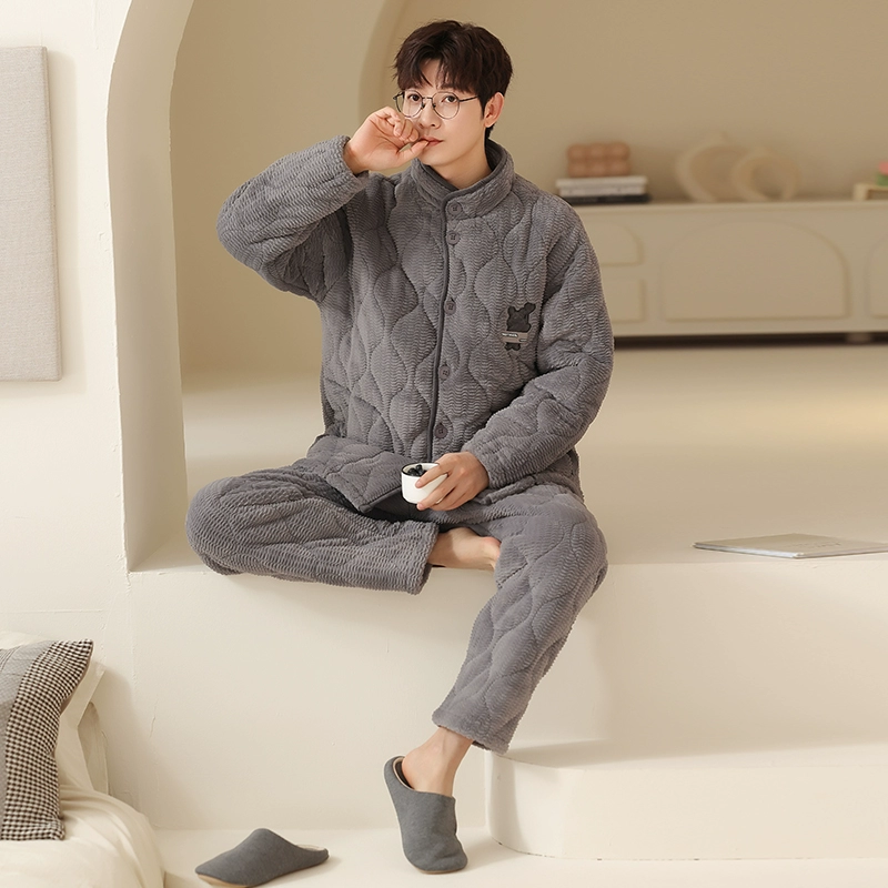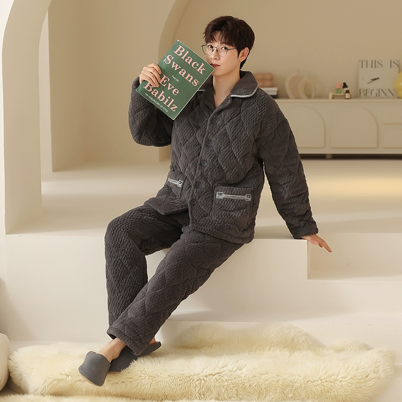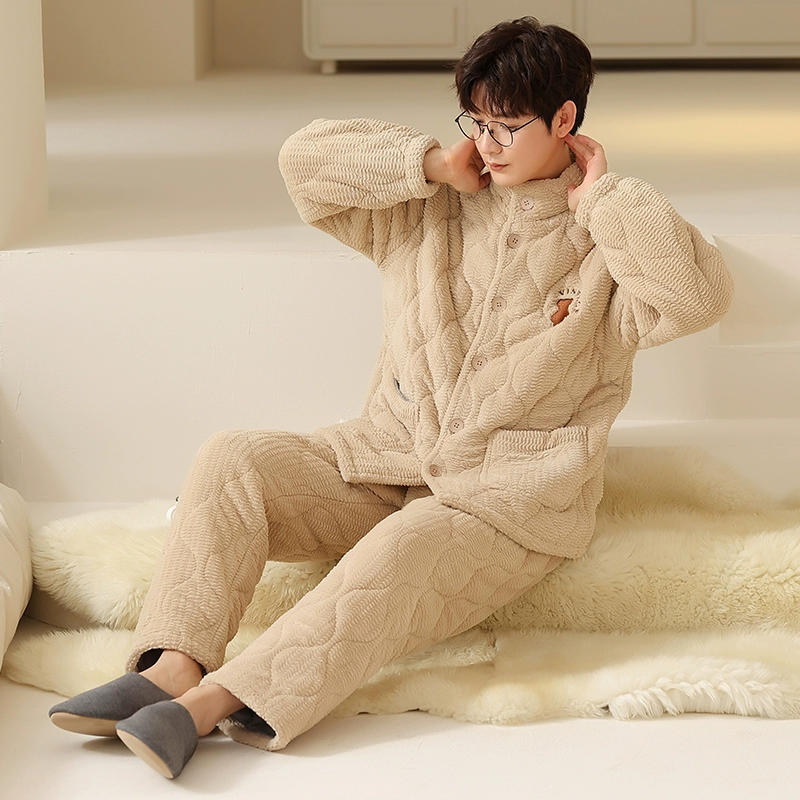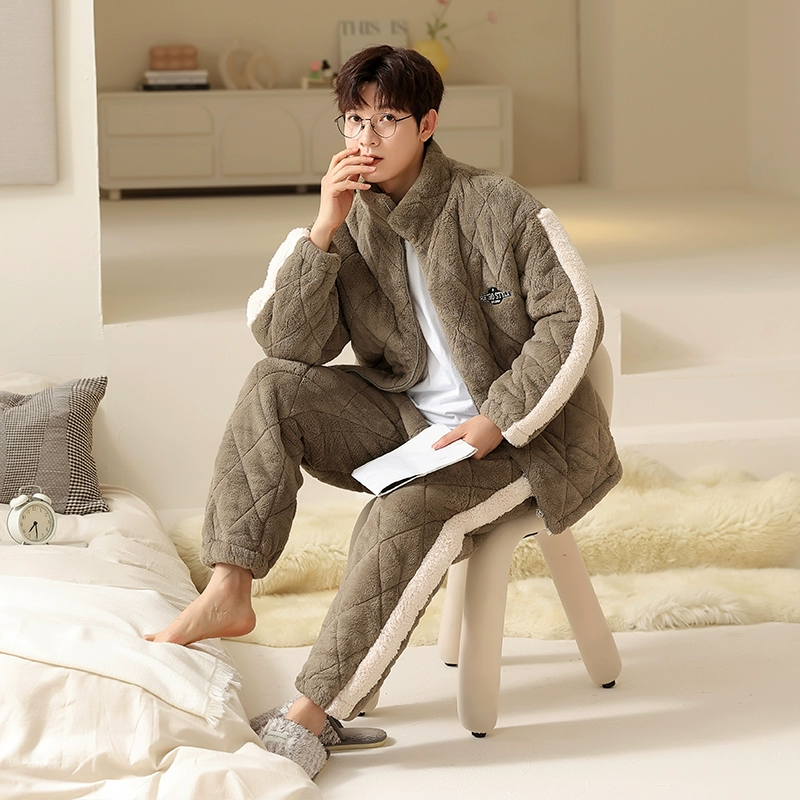 | nameOriginal | Three-layer quilted couple's velvet cardigan men's and women's pajamas |