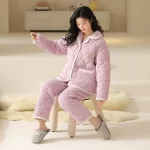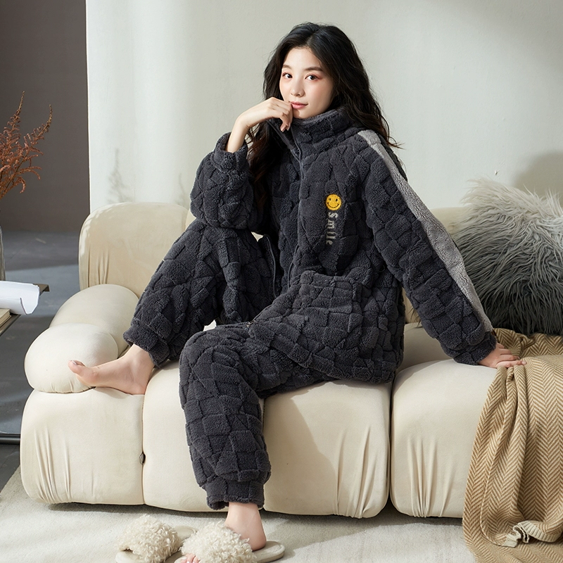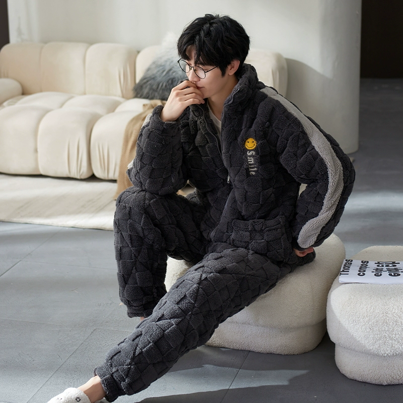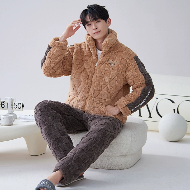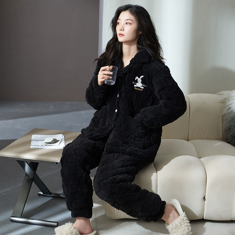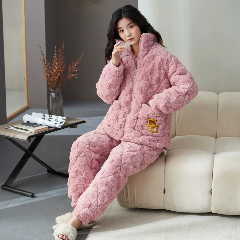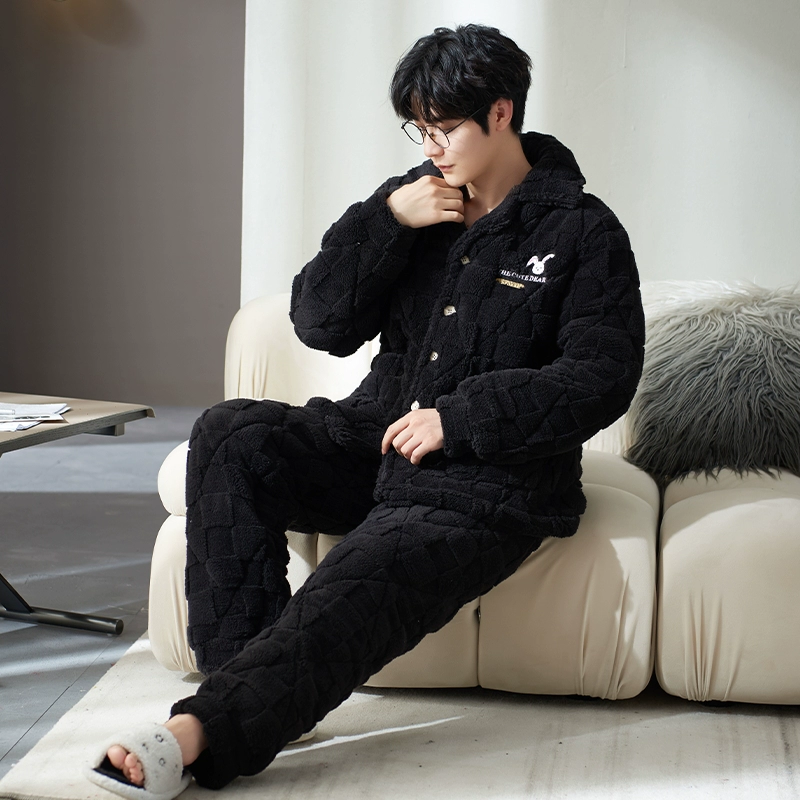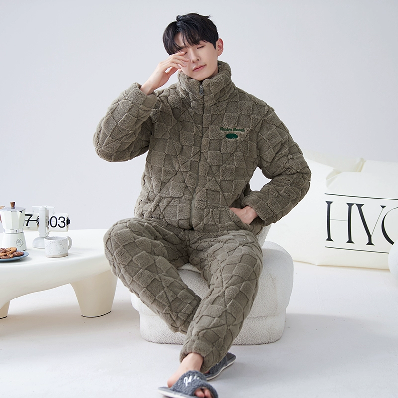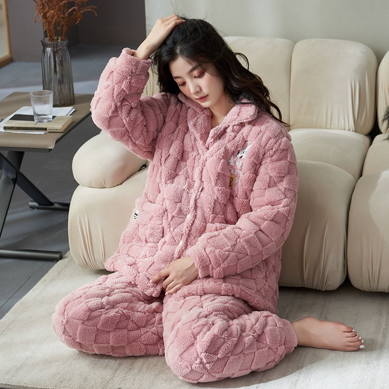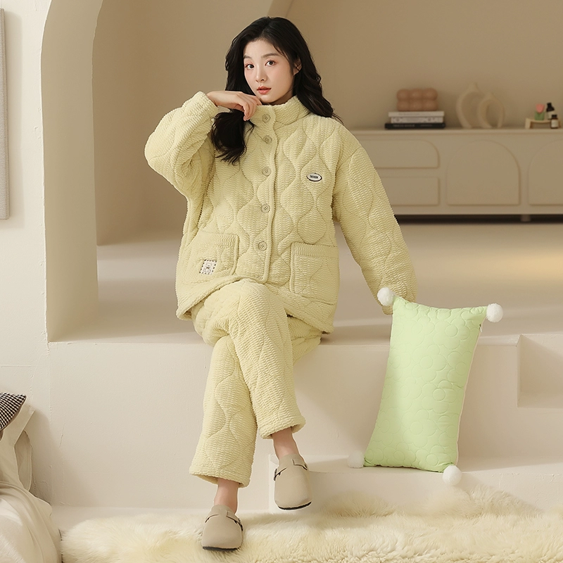 | nameOriginal | Three-layer quilted couple's velvet cardigan men's and women's pajamas |