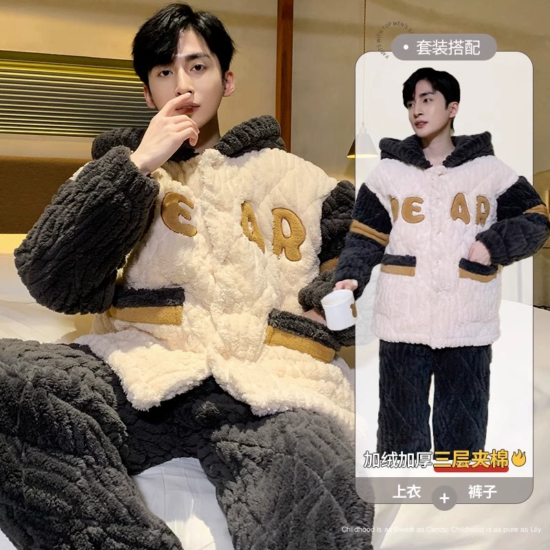 | nameOriginal | Three-layer quilted men's autumn and winter extended pajamas |