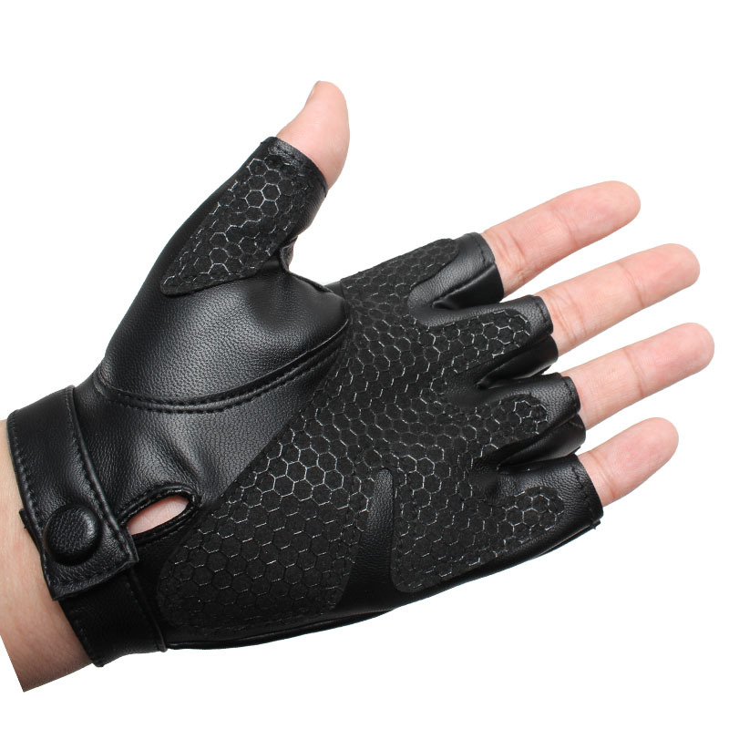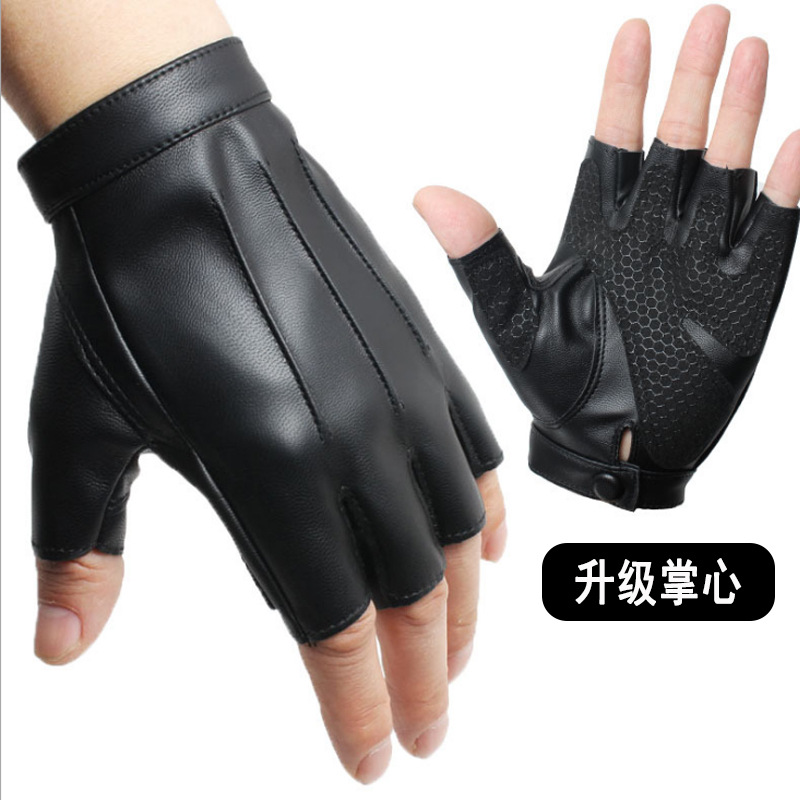 Three-line half-finger gloves men’s and women’s PU outdoor sports cycling gloves driving punk stage nightclub performance one piece