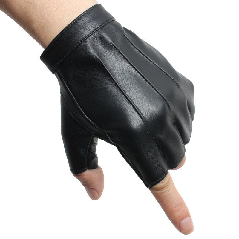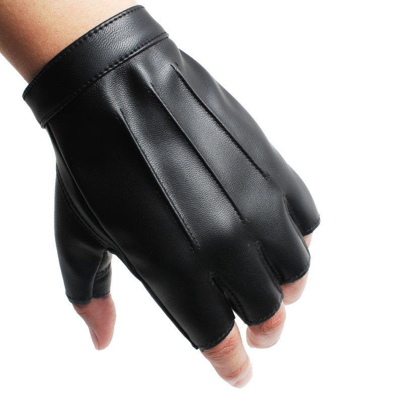 Three-line half-finger gloves men's and women's PU outdoor sports cycling gloves driving punk stage nightclub performance one piece