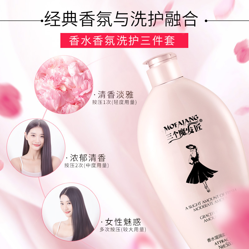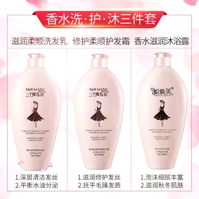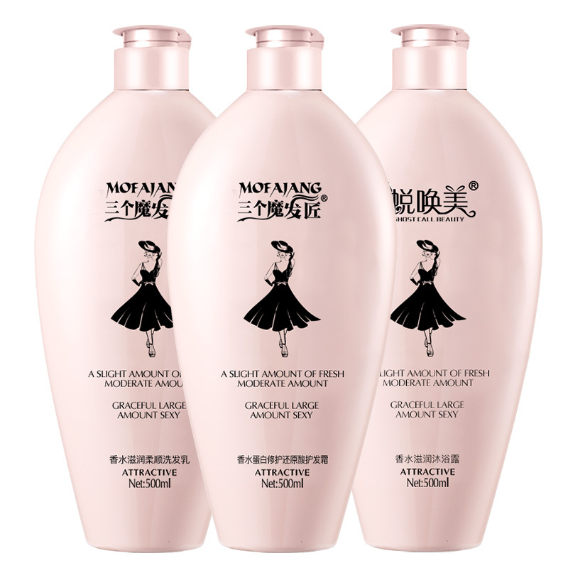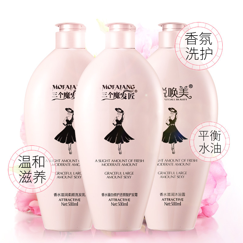 | nameOriginal | Three magic hair maker black dress fragrance shampoo small anti-dandruff soft shampoo shower gel hair conditioner factory wholesale |