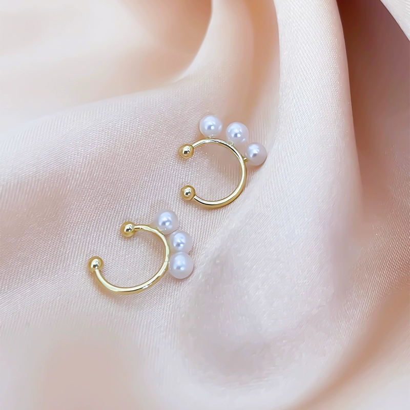 Three pearl ear cuffs without piercing niche design personalized earrings simple ins cold trend earrings for women