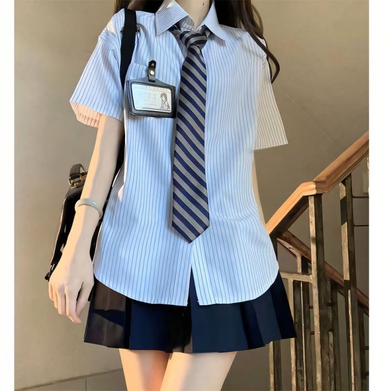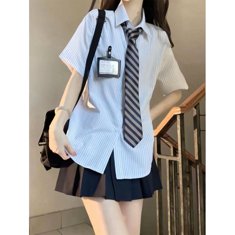 | nameOriginal | Three-piece Japanese College Style Short-sleeved JK Uniform Striped Shirt Women's Summer New High Waist Pleated Skirt |