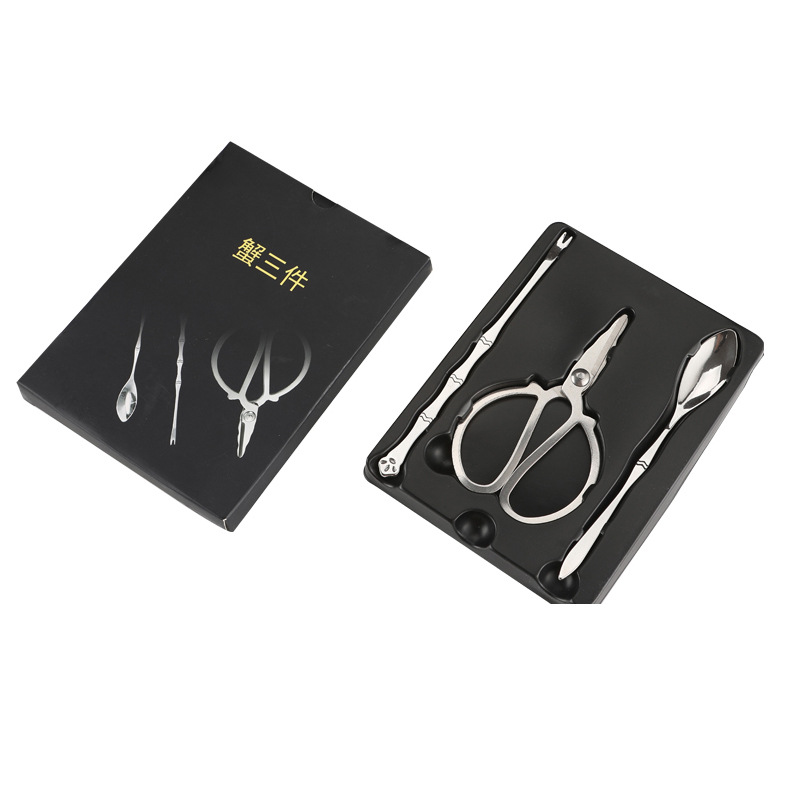 | nameOriginal | Three-piece set of crab eating tools stainless steel crab scissors crab spoon crab fork dismantling crab set hairy crab tools gift box |