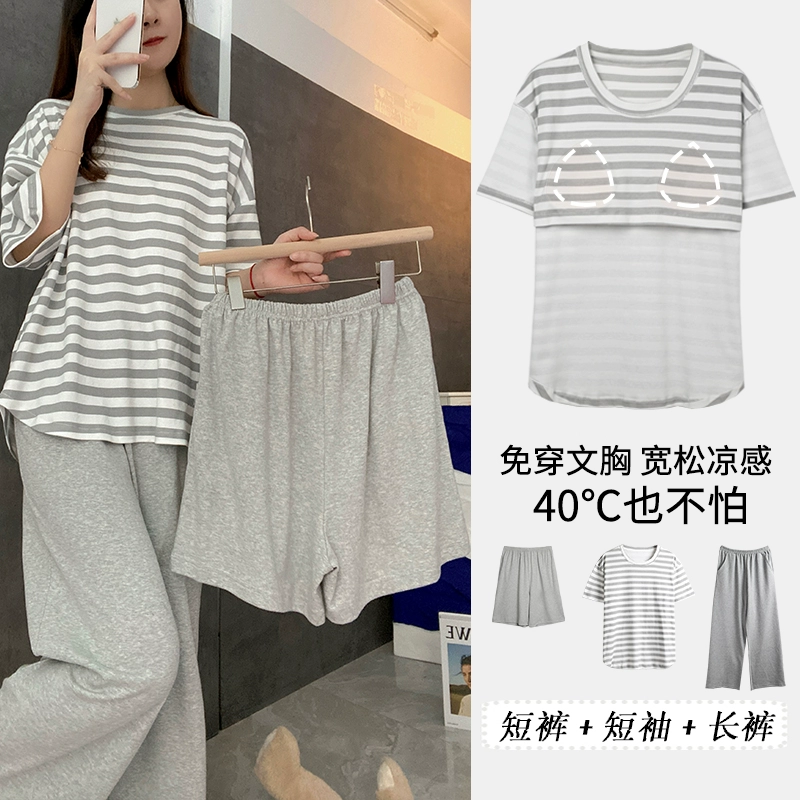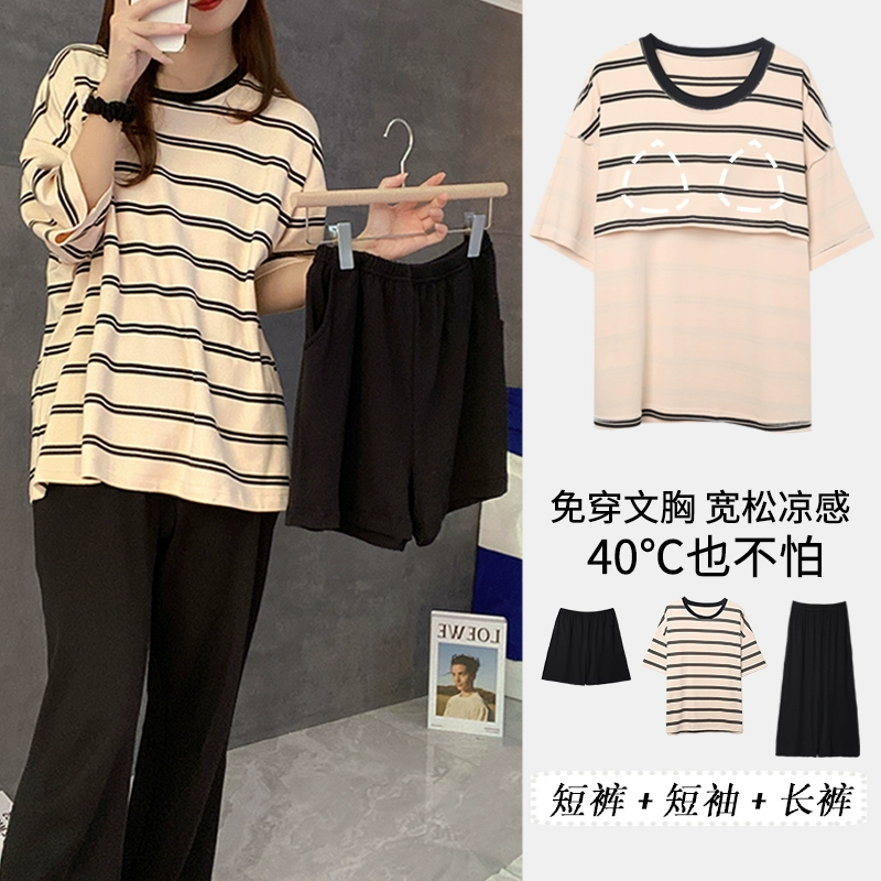 | nameOriginal | Three piece set of female internet celebrity style home wear striped pajamas |