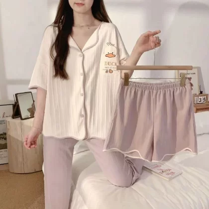 | nameOriginal | Three-piece set of girls' pure cotton Internet celebrity style trousers and pajamas |