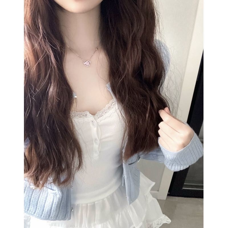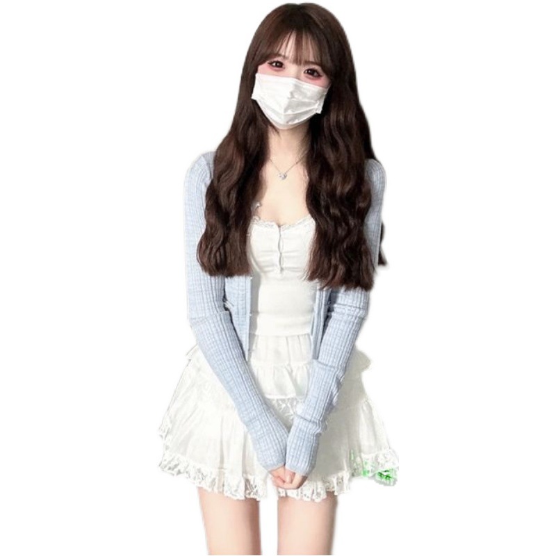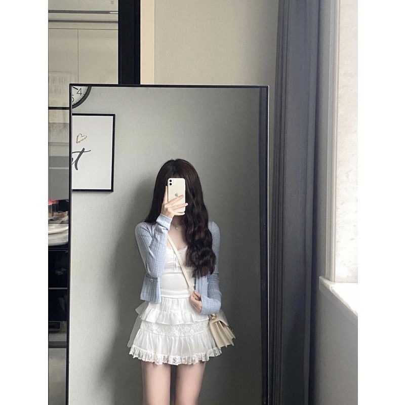 | nameOriginal | [Three-piece Suit] Summer New Spice Girl Slim-fit Short Sunscreen Cardigan Sling Vest High Waist Skirt Women |