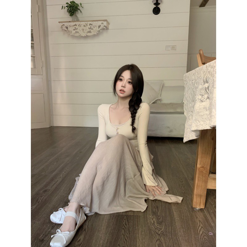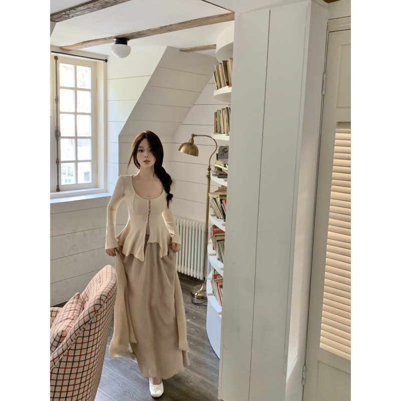 Three-piece women's 2024 autumn new French court style cardigan camisole high waist slim half skirt