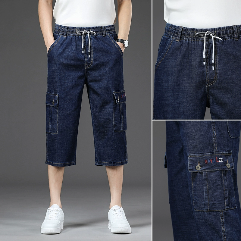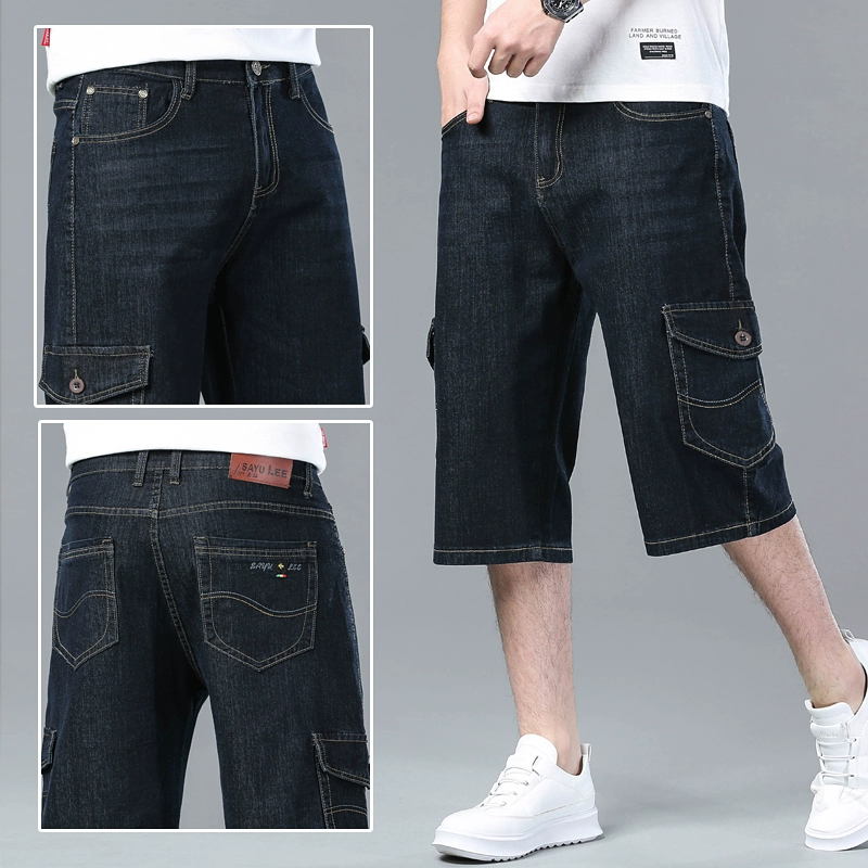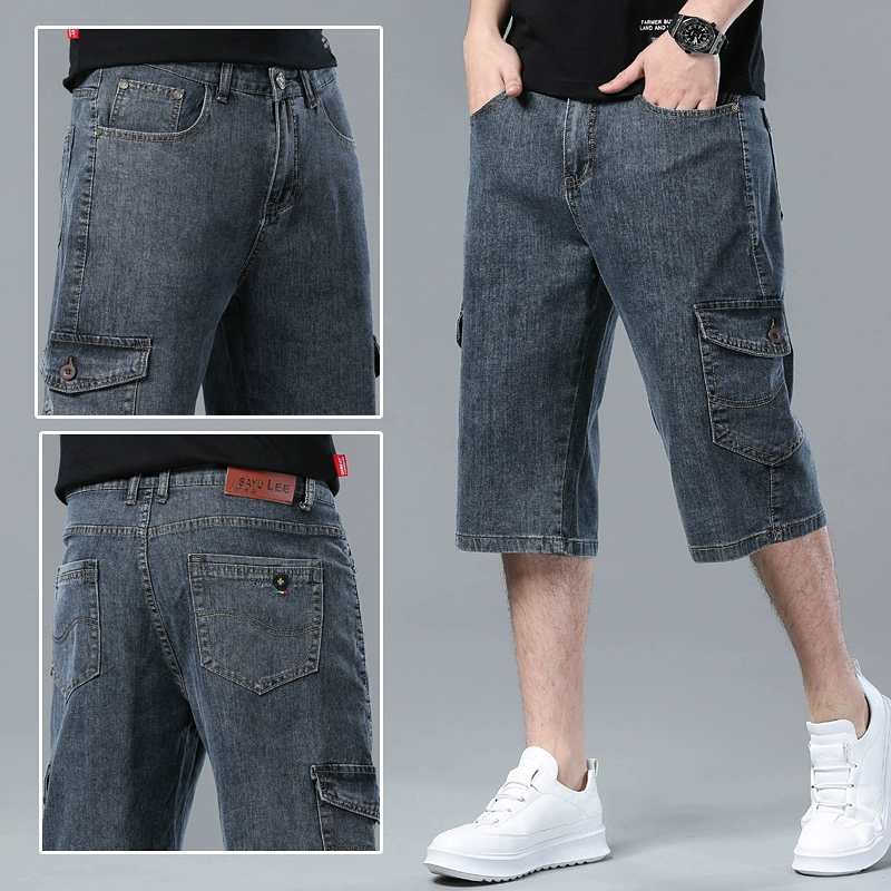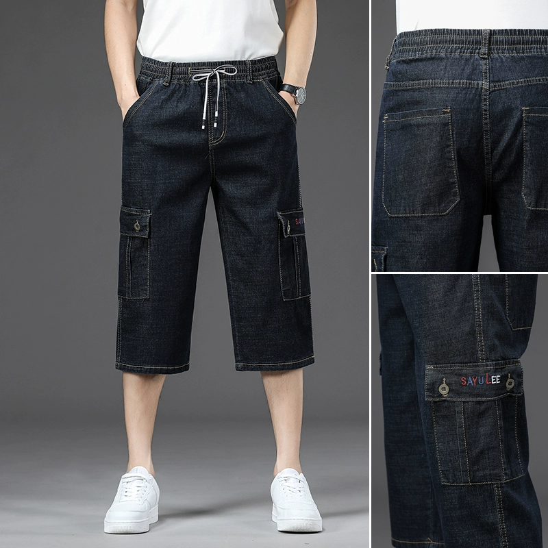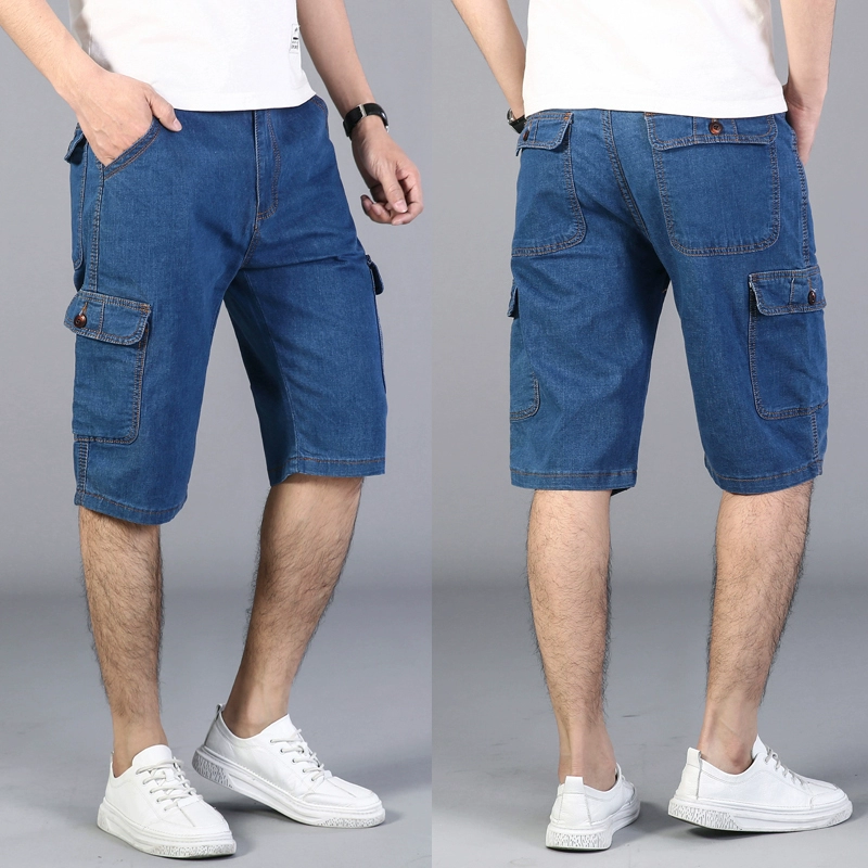 | nameOriginal | Three-point drawstring multi-pocket fat denim shorts |